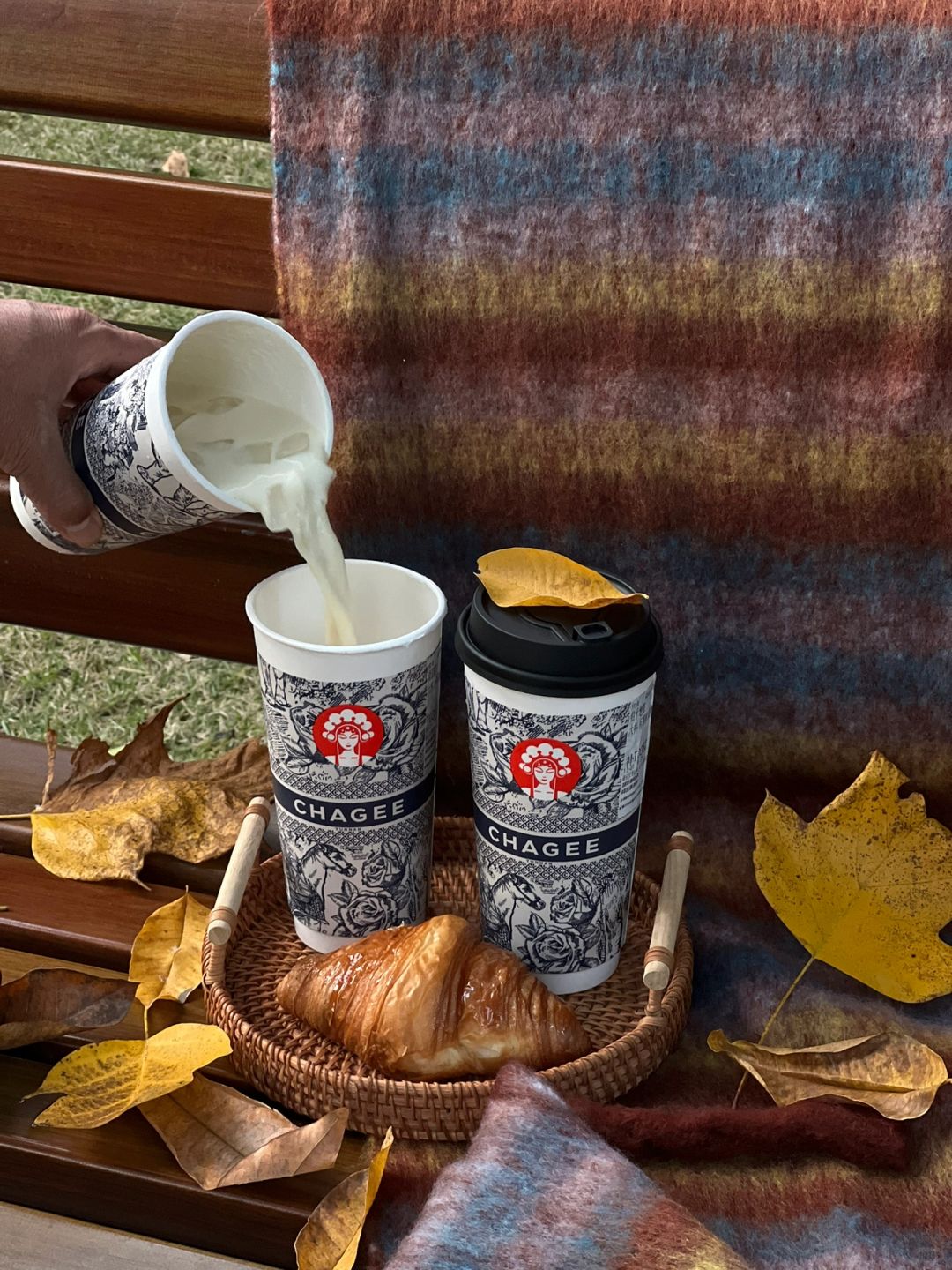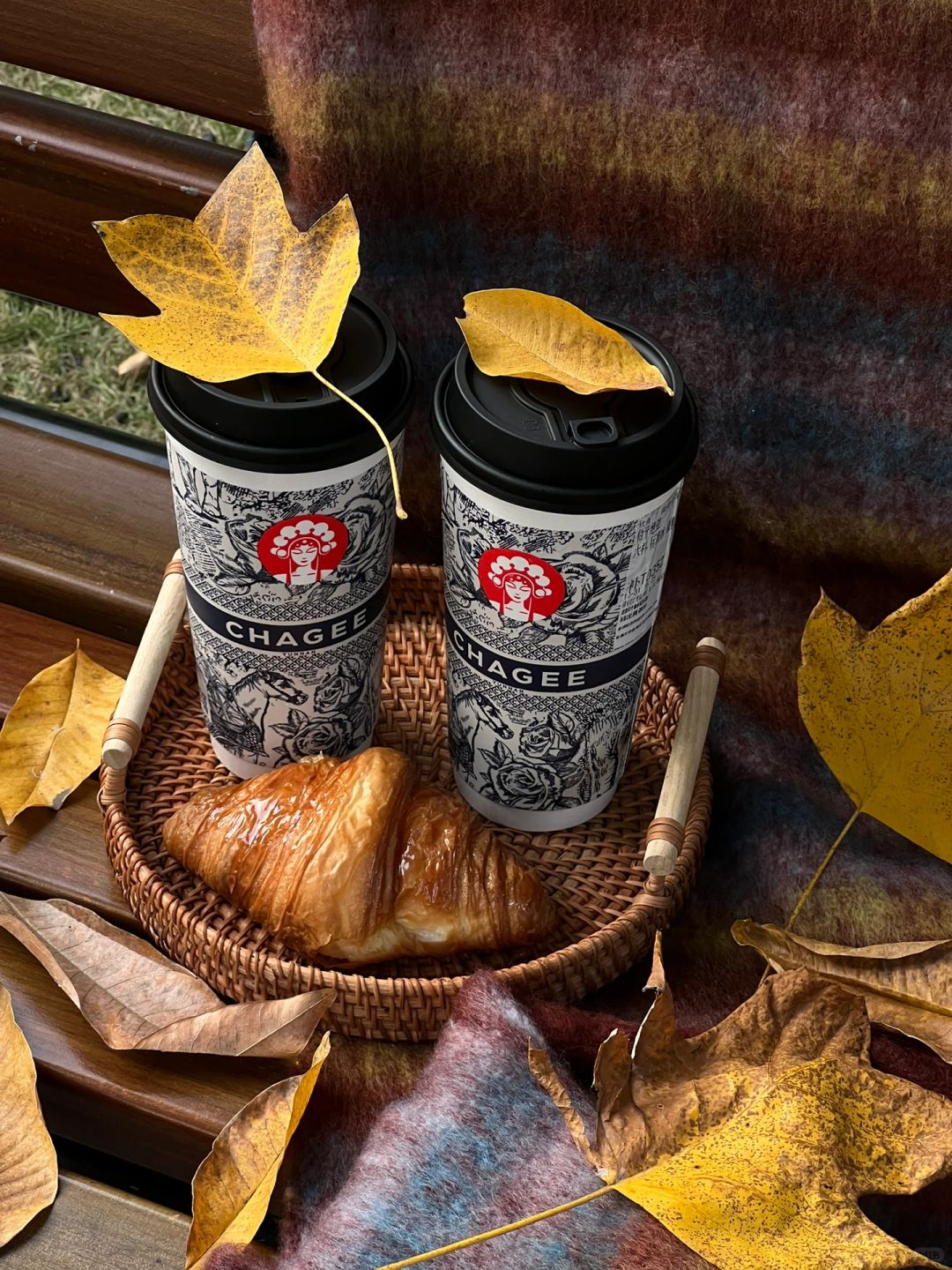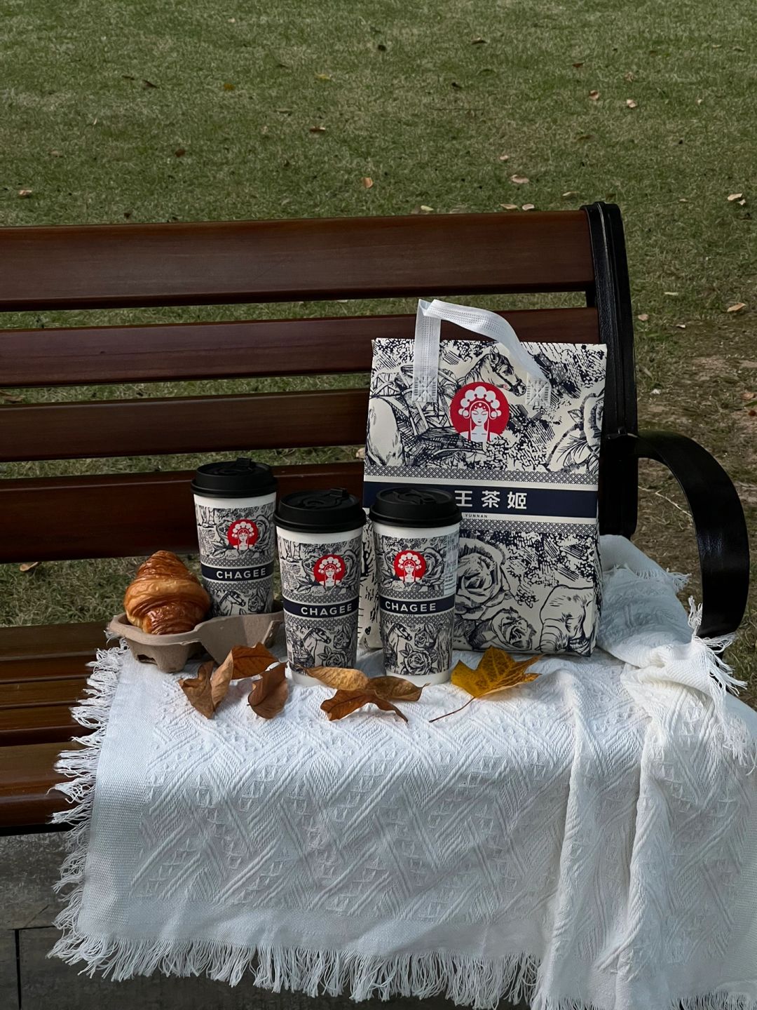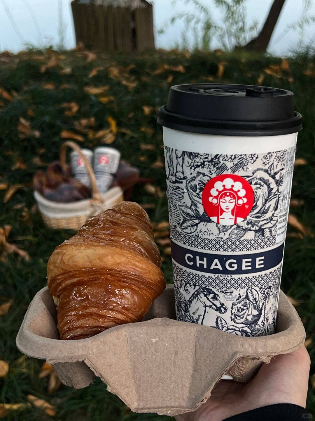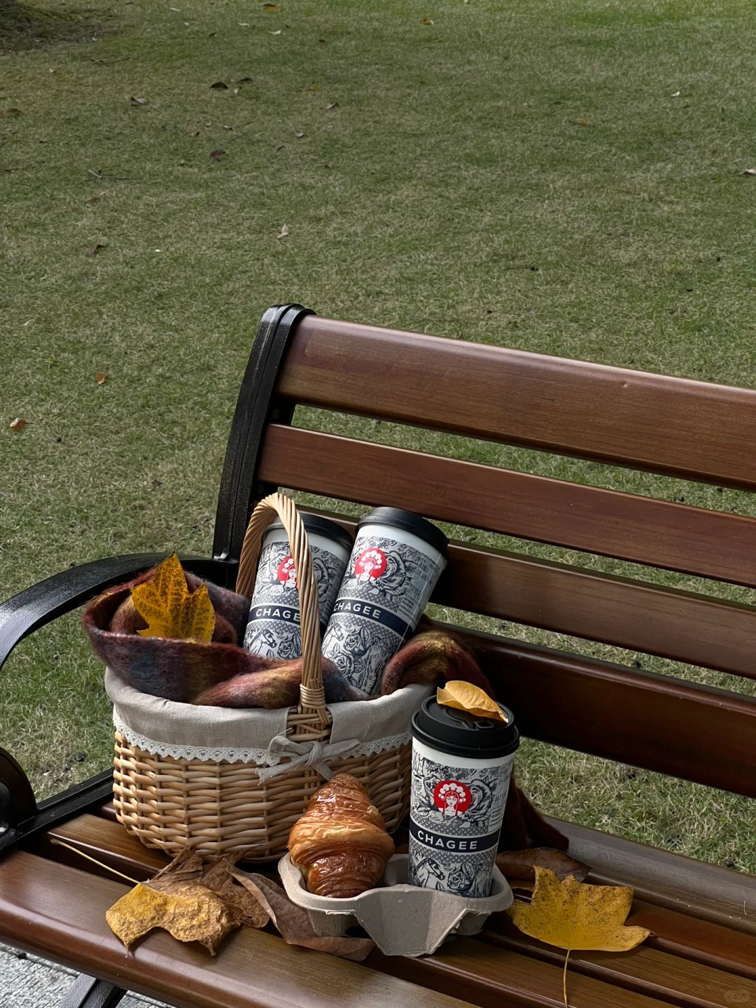 坐在公园的长椅上,和好友吃着牛角包一人一杯霸王茶姬🥤分分钟拍出秋日氛围感大片🍂