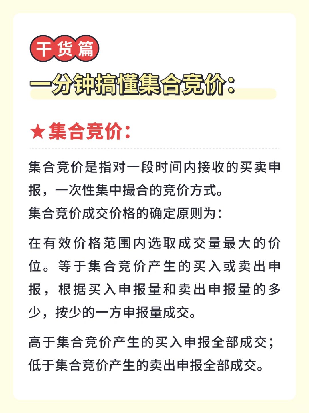 👉 集合竞价是指对一段时间内接收的买卖申报,一次性集中撮合的竞价方式。集合竞价成交价格的确定原则为: