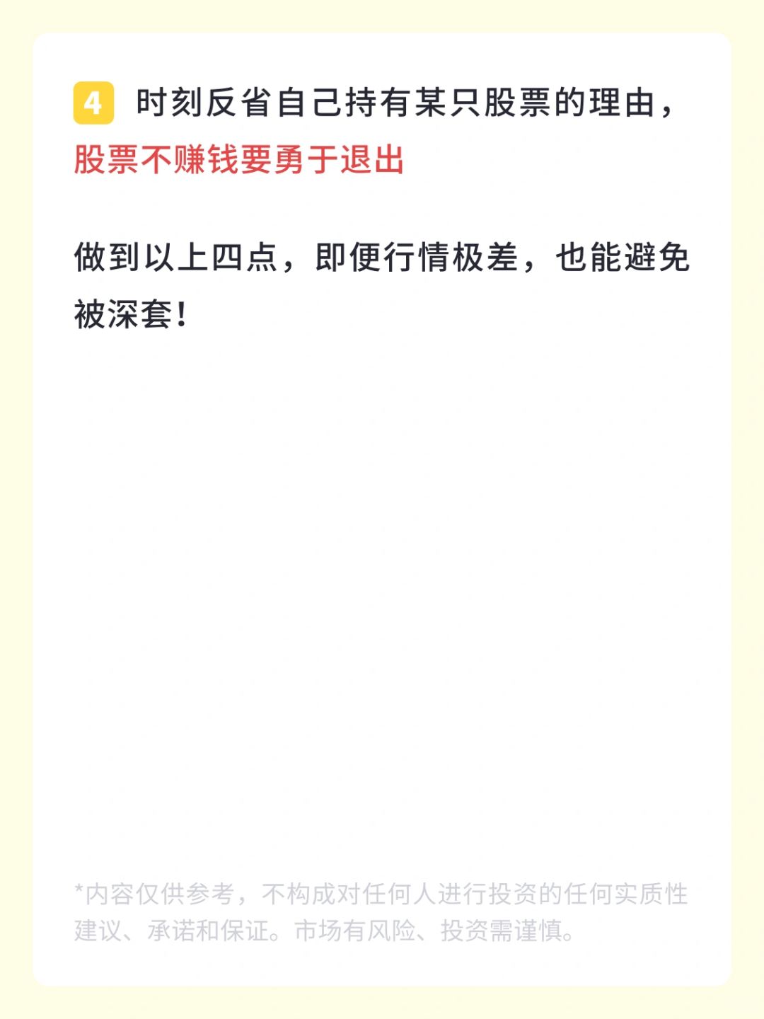 👉 时刻反省自己持有某只股票的理由,股票不赚钱要勇于退出