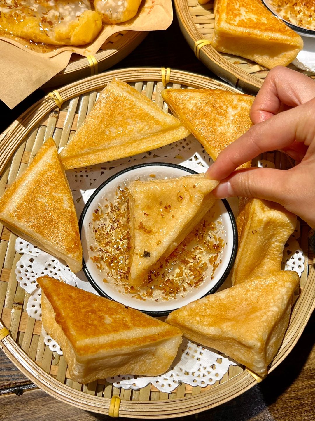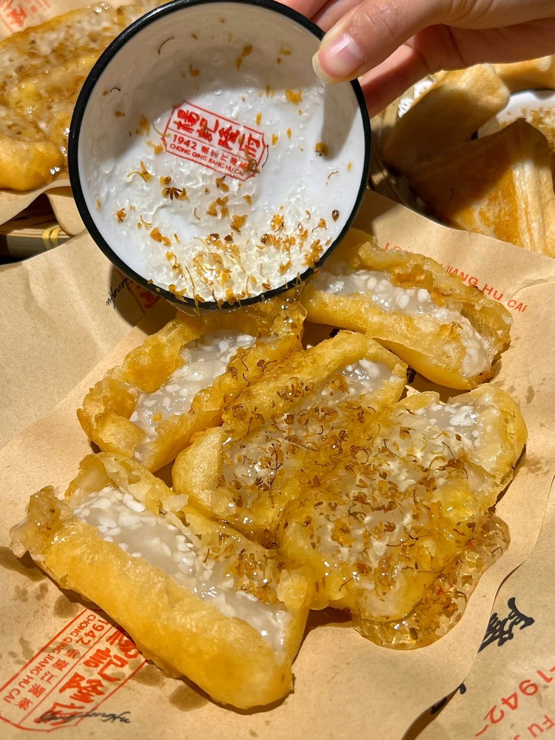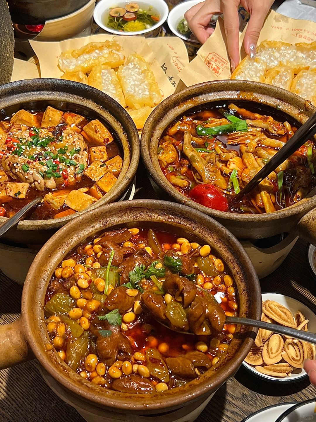 庆龄白凤糕、黑金大麻球、脆炸米酒、肥肠、脑花砂锅煲都好好吃啊