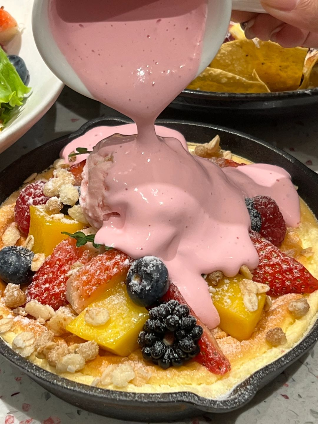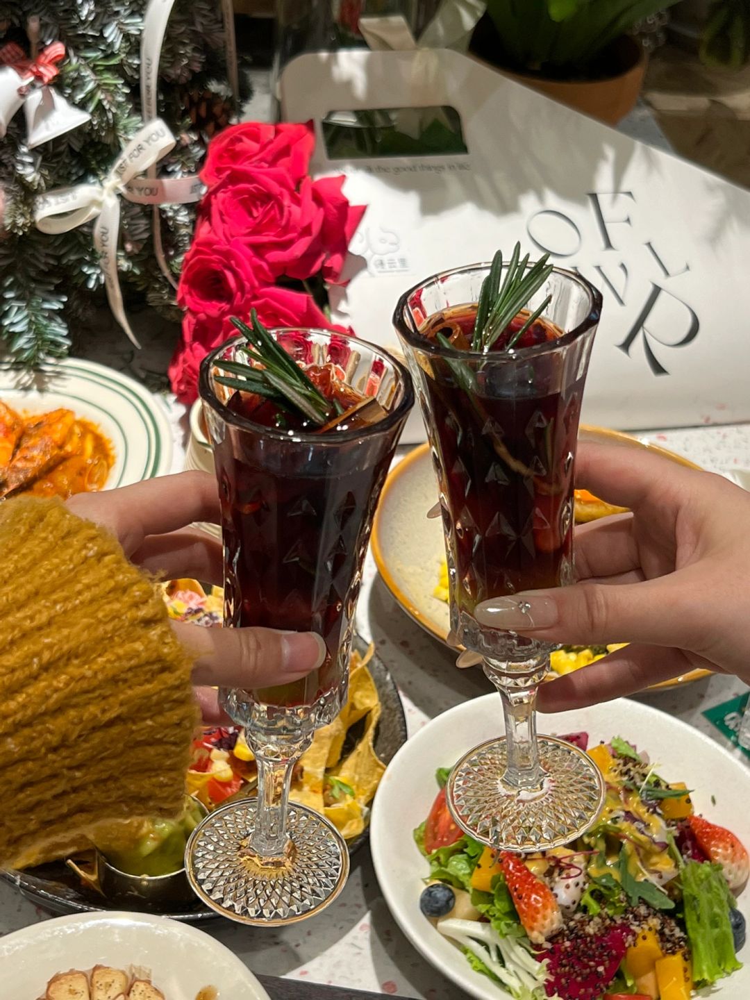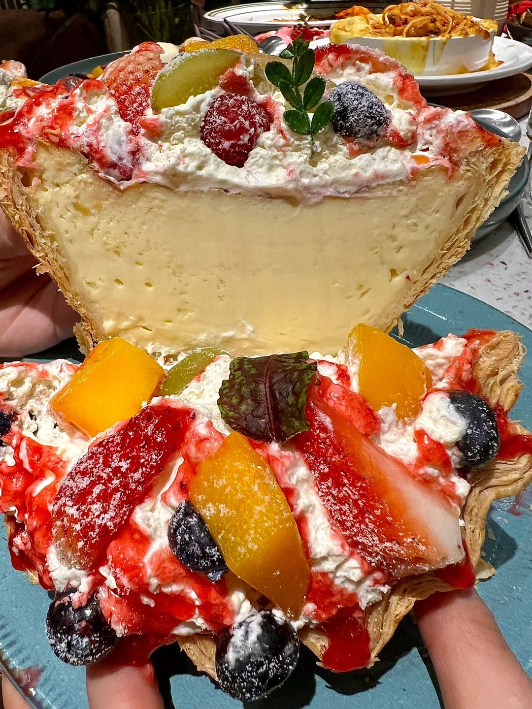 超大个的莓果大蛋挞、冰淇淋可颂🥐 duangduang的舒芙蕾、和牛流心饭。。。 门口全是圣诞树拍照打卡尊嘟hinhin好看!