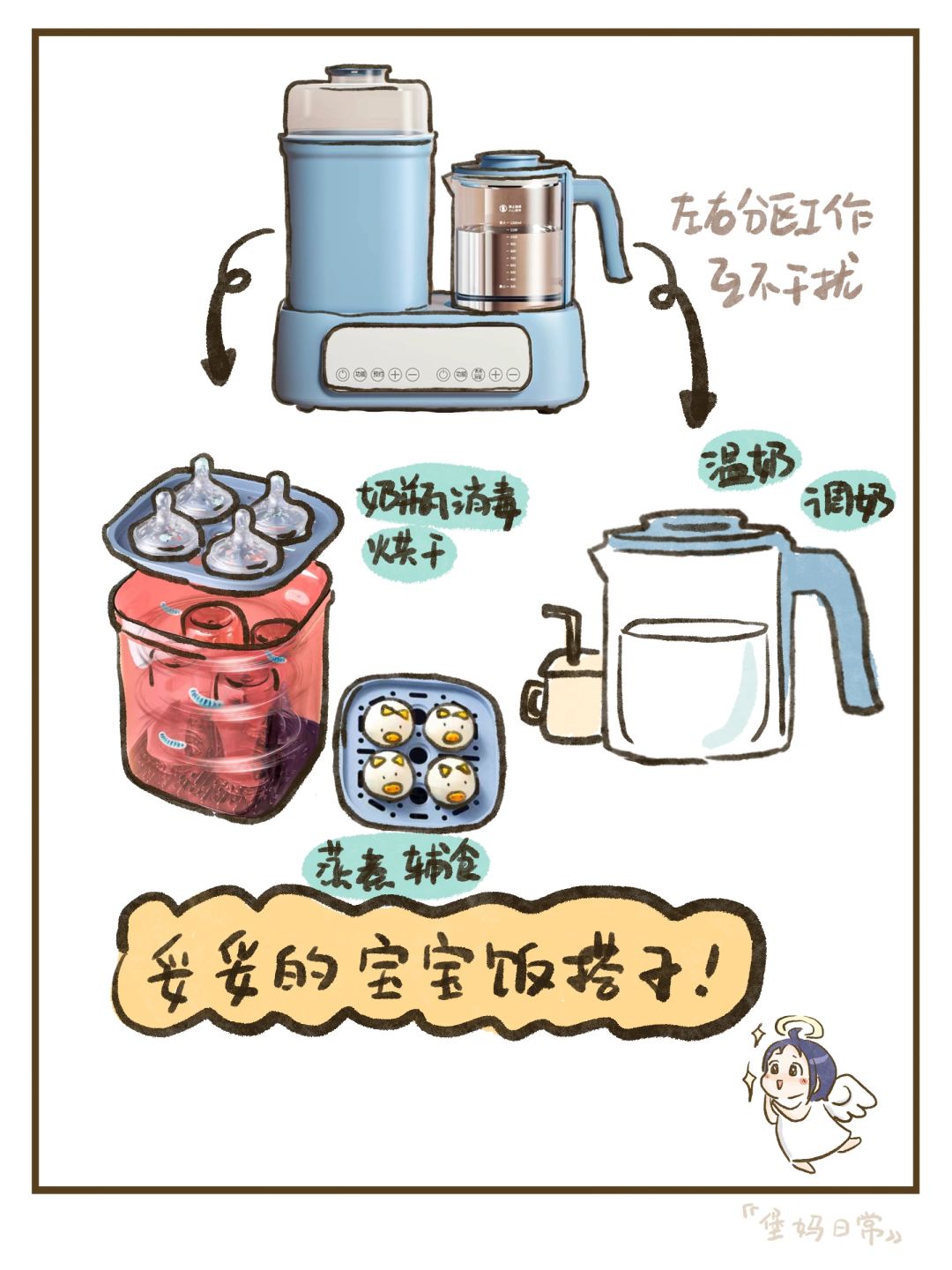 [种草R]除了恒温调奶,还可以温奶,蒸辅食,消毒,烘干和煮沸水,真的是一机多用来着;左右分区工作,独立开关互补干扰,早上我会在左边给蛋堡蒸点小馒头,右边煮点粥,这样一会儿的功夫蛋堡的早餐就搞定了~白天随时用它温奶调奶,晚上睡前再把蛋堡的奶瓶和牙咬胶什么的放进去高温消毒,真的解决了我好多问题,让我有更多的时间能做自己的事~[暗中观察R][暗中观察R][暗中观察R]