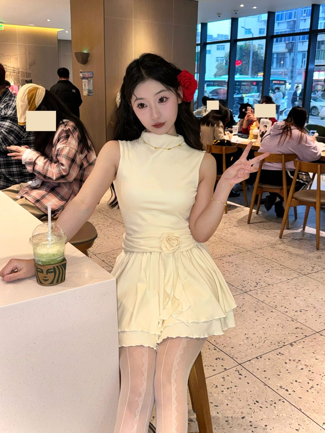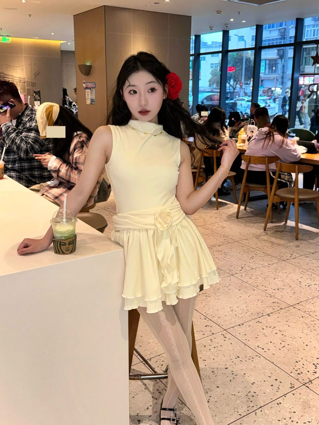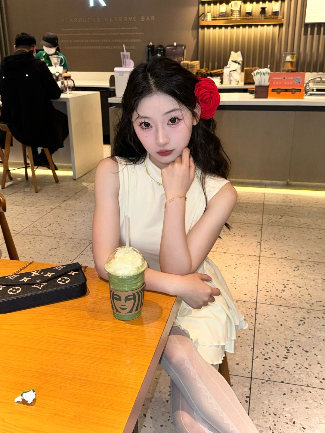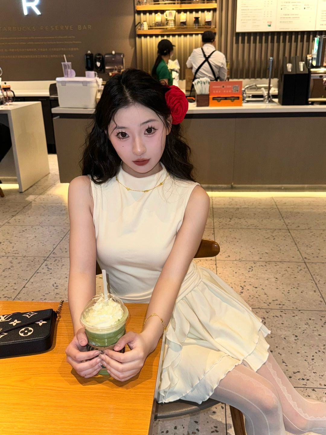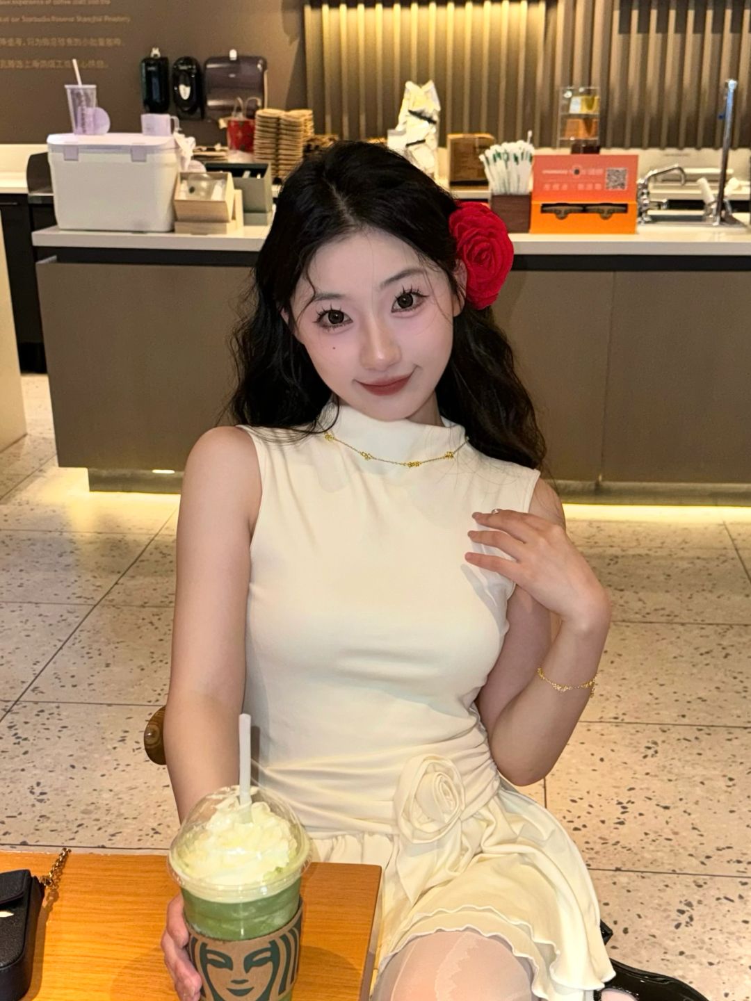 方圆脸都去戴这个花花 显脸小! 修身无袖连衣裙好有气质啊