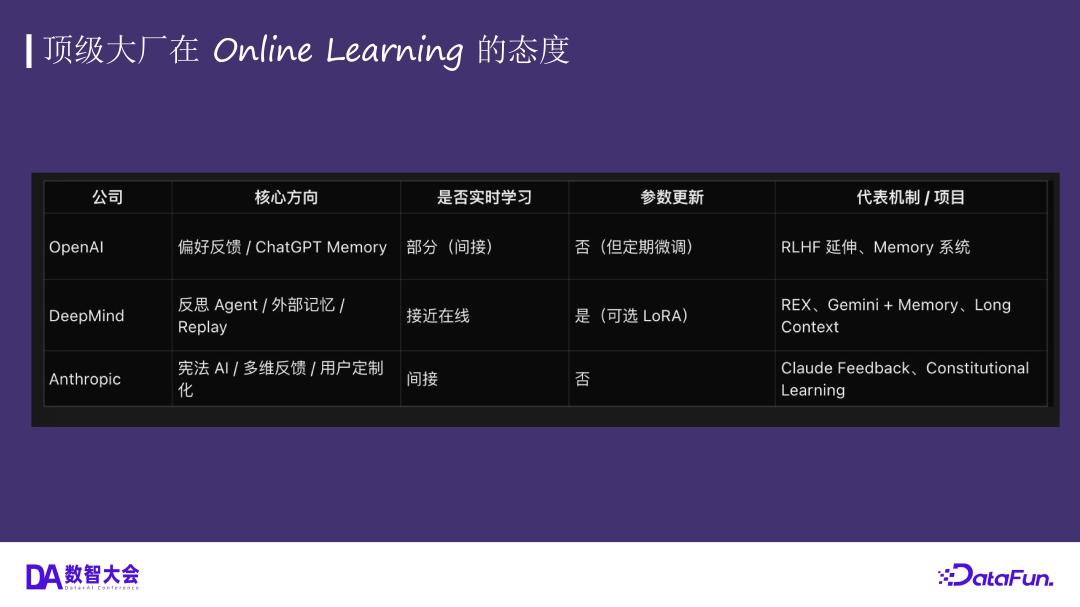 因此,Online Learning 才是终极解决方案。但目前全球顶尖厂商在该领域的进展仍然缓慢。