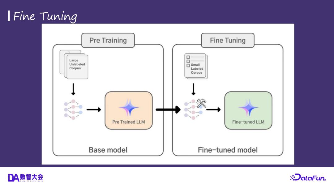 第二种方法是微调(Fine-Tuning),即用特定场景数据对预训练模型进行额外训练。但当前 FT 方案存在明显局限:
