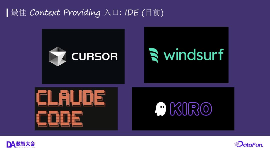 当前,IDE 已成为 Context Providing 的最高效载体。与 ChatGPT 依赖手动粘贴的低效方式不同,IDE(如 Cursor、KIRO)通过 MCP 直接访问代码仓库,并支持命令行信息无缝导入,大幅提升了信息组织效率。