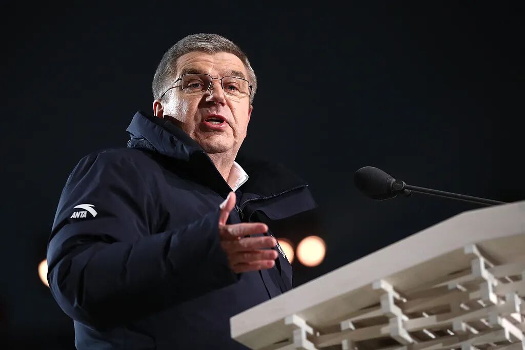 2018年2月9日,国际奥委会主席巴赫在平昌冬奥会开幕式上致辞。图/视觉中国