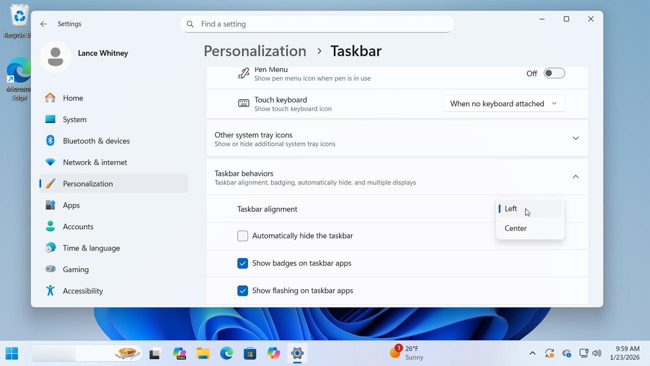 操作: 设置 > 个性化 > 任务栏 > 任务栏行为。动作: 在“任务栏对齐方式”里,把“居中”切换成“左”。效果: 没错,就是这个味儿!