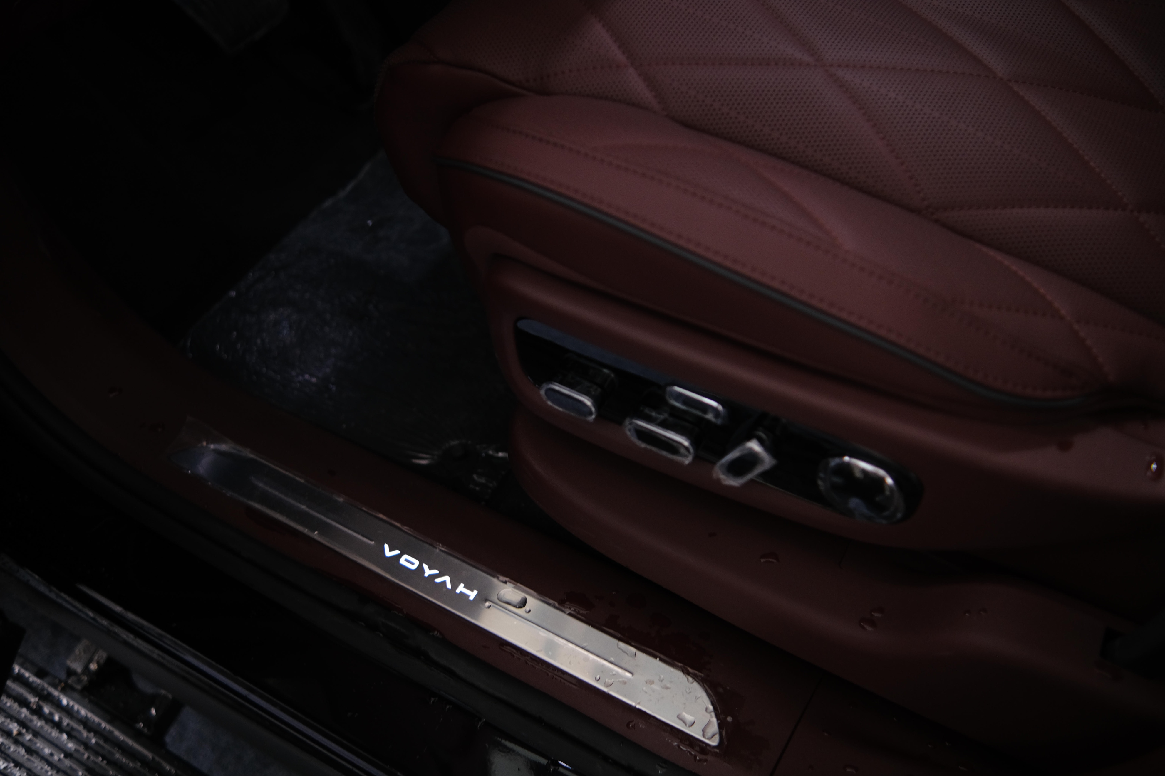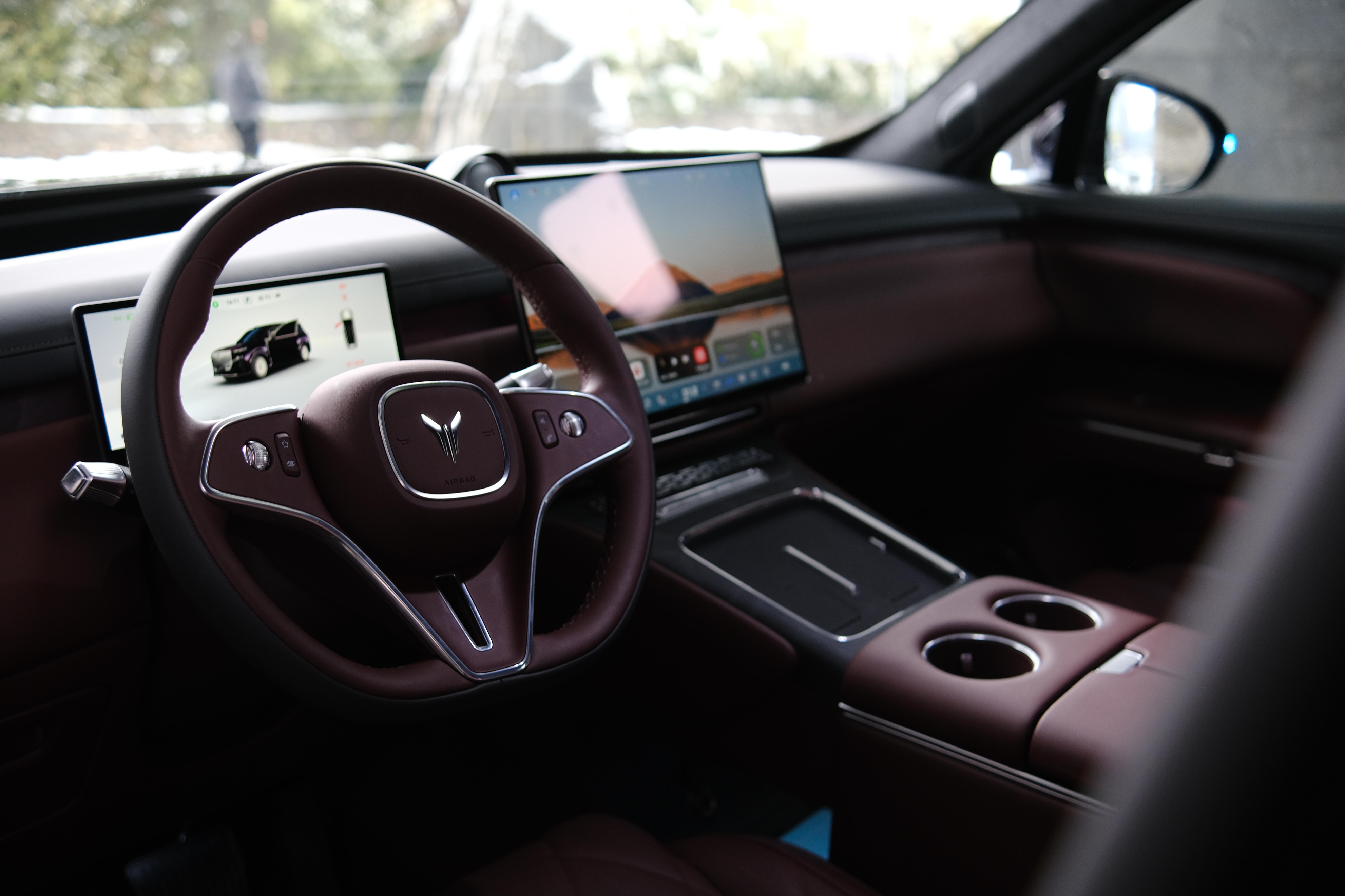 内饰设计以“山海万象”为设计理念,座舱内部采用鲲鹏之翼环抱布局,横向线条舒展,搭配全舱软包悬浮设计,营造出豪华且温馨的氛围。车内大量运用山水意境孔纹和山水流韵木饰,总面积达1.228㎡的木饰全车共11处精嵌,流动木纹装饰充满山形水意,仿佛将山水意境融入车内空间。