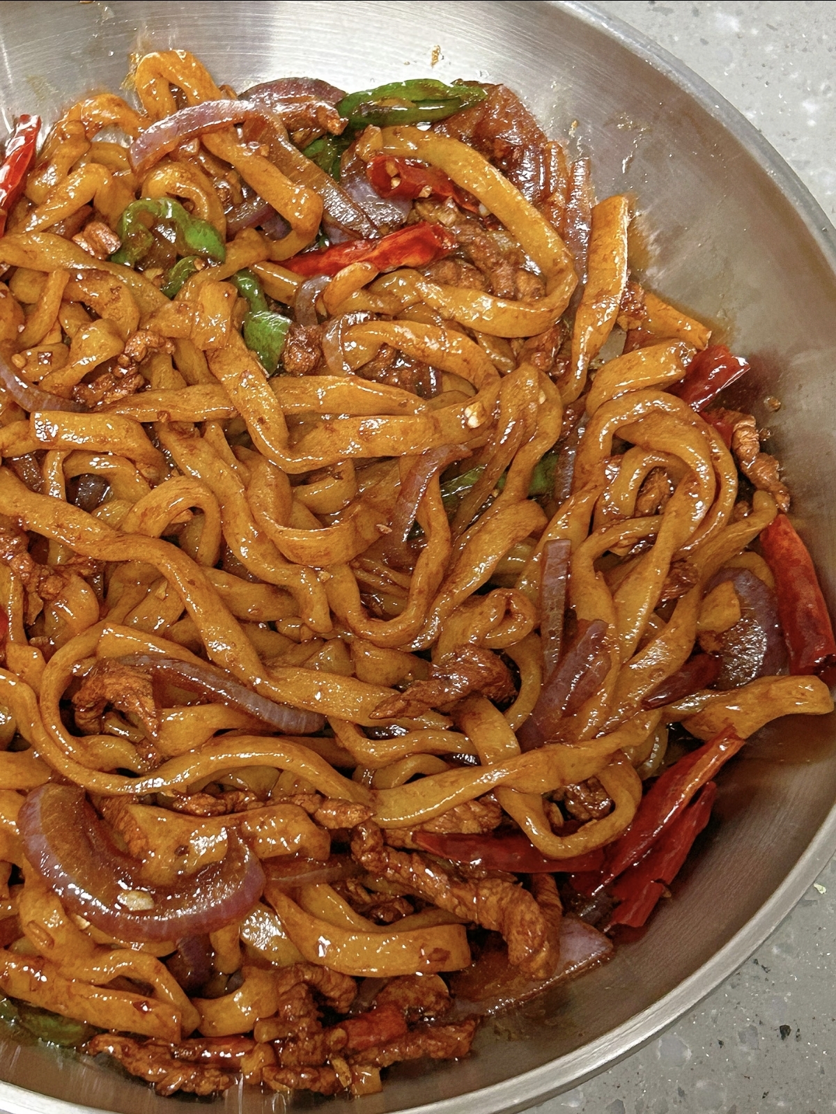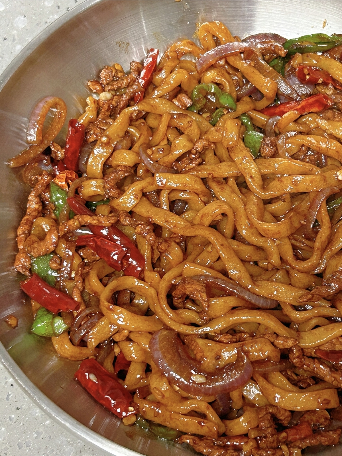 出锅装盘,热气腾腾,香气四溢。夹起一筷子送入口中,面条干香有嚼劲,肉丝滑嫩,配菜爽脆,香辣的味道在舌尖绽放,锅气十足。这不仅仅是一碗炒面,更是家常烟火气里的一份满足与慰藉。从准备食材到最终品尝,每一个步骤都倾注了对美食的热爱与用心。在这个快节奏的时代,不妨放慢脚步,为自己和家人做一盘这样充满锅气的香辣肉丝炒面,让味蕾在干香与香辣的交织中,感受生活的美好与丰盛。这便是家常菜的魅力,简单,却足以温暖人心。