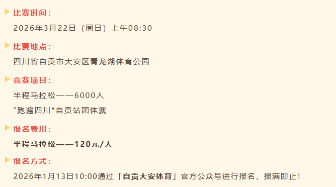 2026年1月13日10:00通过「自贡大安体育」官方公众号进行报名,报满即止!
