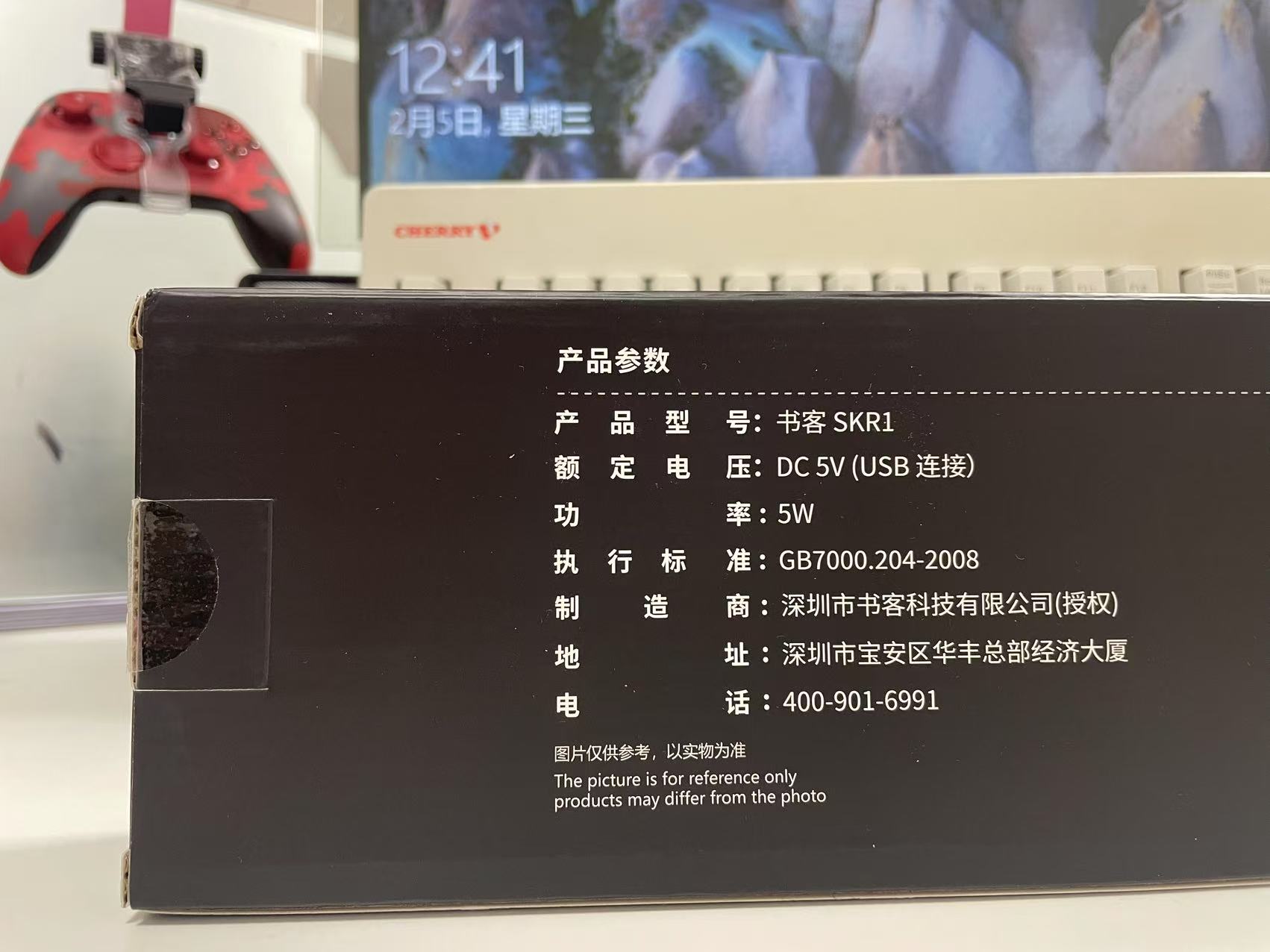 在书客logo的正后方是usb C的接口,只需要5V1A的电源输入,所以插在电脑机箱上就可以直接取电了。skr1支持断电后来电的自动记忆恢复,关电脑灯灭,开电脑灯亮并且自动将亮度和色温还原到之前的状态,不需要大家每天再去调整。超级方便。