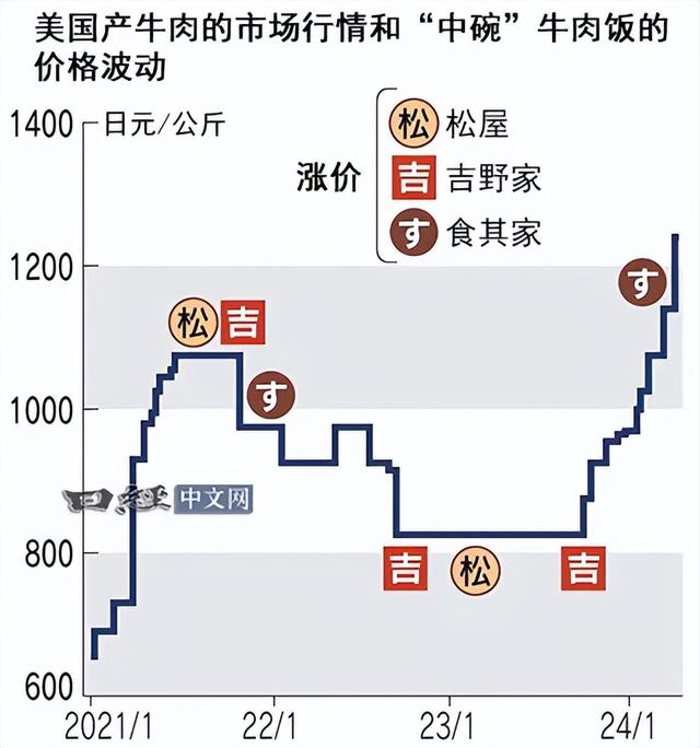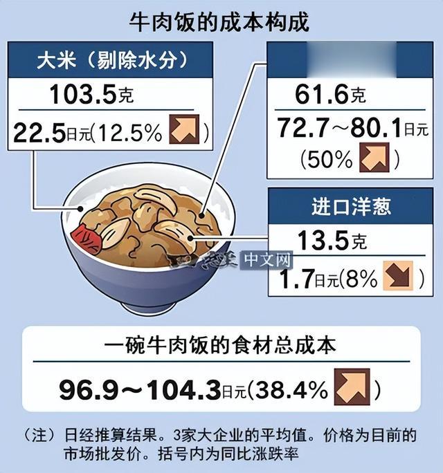 曾经被视为日本通缩时期的象征物——牛肉饭价格在这波汇率暴跌的趋势下迎来一波大涨。据日本经济新闻报道,主要进口自美国的牛肉价格,已经上涨至历史最高水平。
