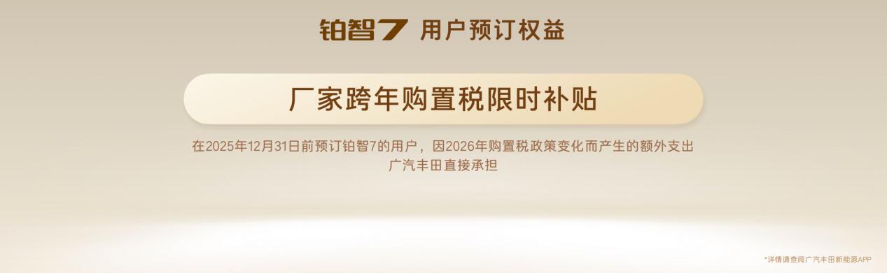 11月21日,广州国际车展开幕首日,丰田鸿蒙座舱豪华旗舰D级纯电轿车——铂智7迎来“开门鸿”,新车信息首次全量发布。同时,新车同步开启预定,并承诺凡是12月 31日前预定铂智7的用户,因2026年购置税政策变化而产生的额外支出,广汽丰田直接承担!