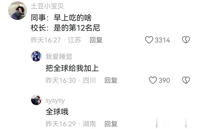 不管别人怎么问,校长的回答“是的全球第12名哦”,着重强调一下是全球。