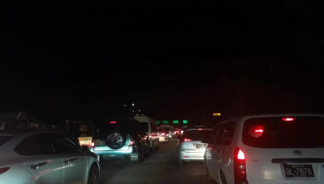 12月月底,出行游客众多,导致仰光省出口零英里检查站处交通拥堵,很多车辆被堵很久。