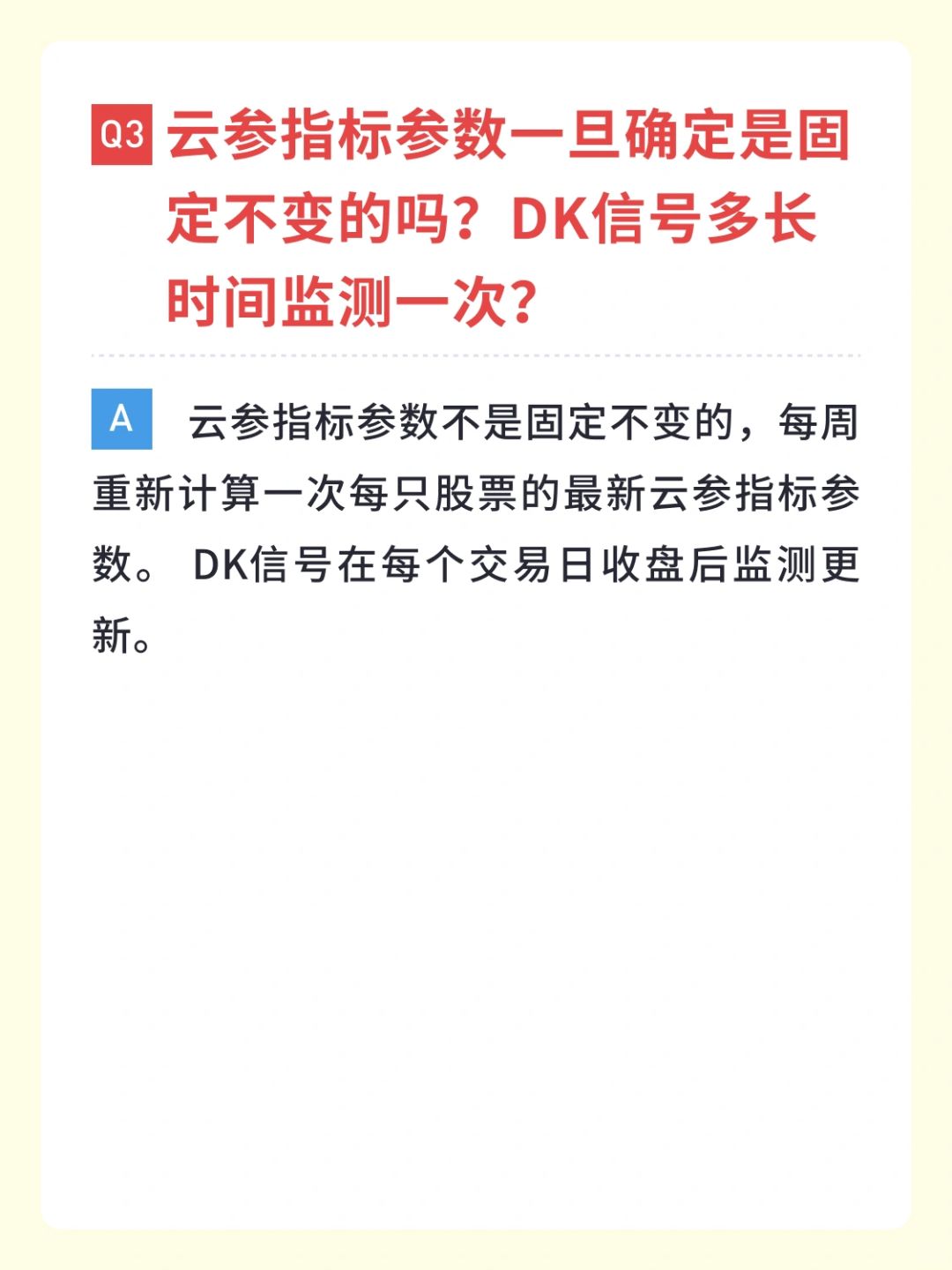 3️⃣ “云参指标参数一旦确定是固定不变的吗?DK信号多长时间监测一次?