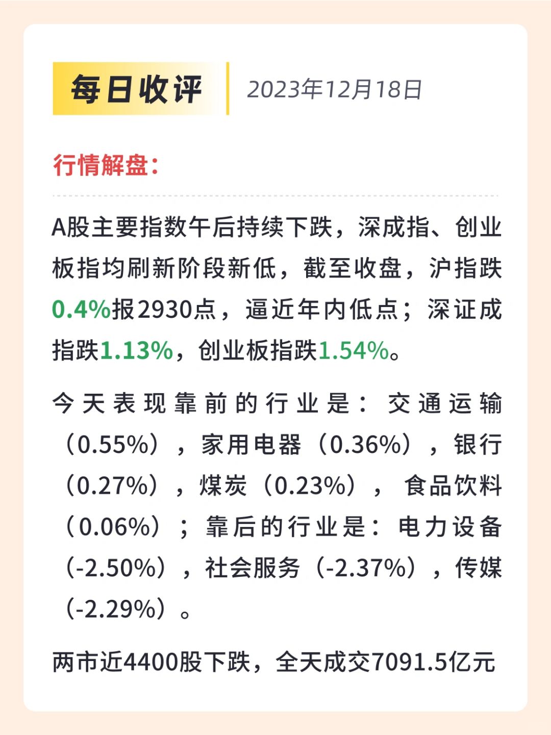 👉 今天表现靠前的行业是:交通运输(0.55%),家用电器(0.36%),银行(0.27%),煤炭(0.23%), 食品饮料(0.06%);靠后的行业是:电力设备(-2.50%),社会服务(-2.37%),传媒(-2.29%)。
