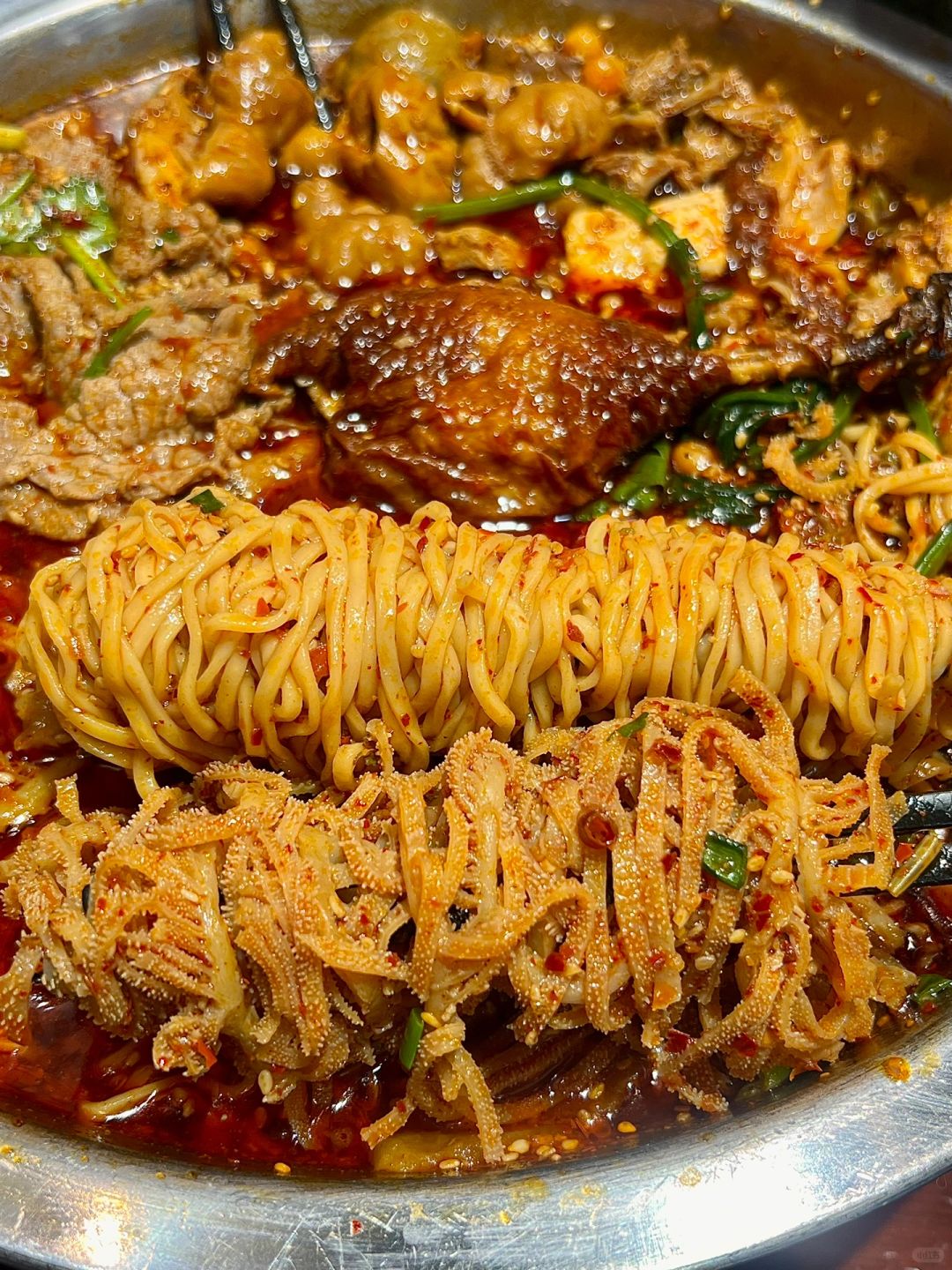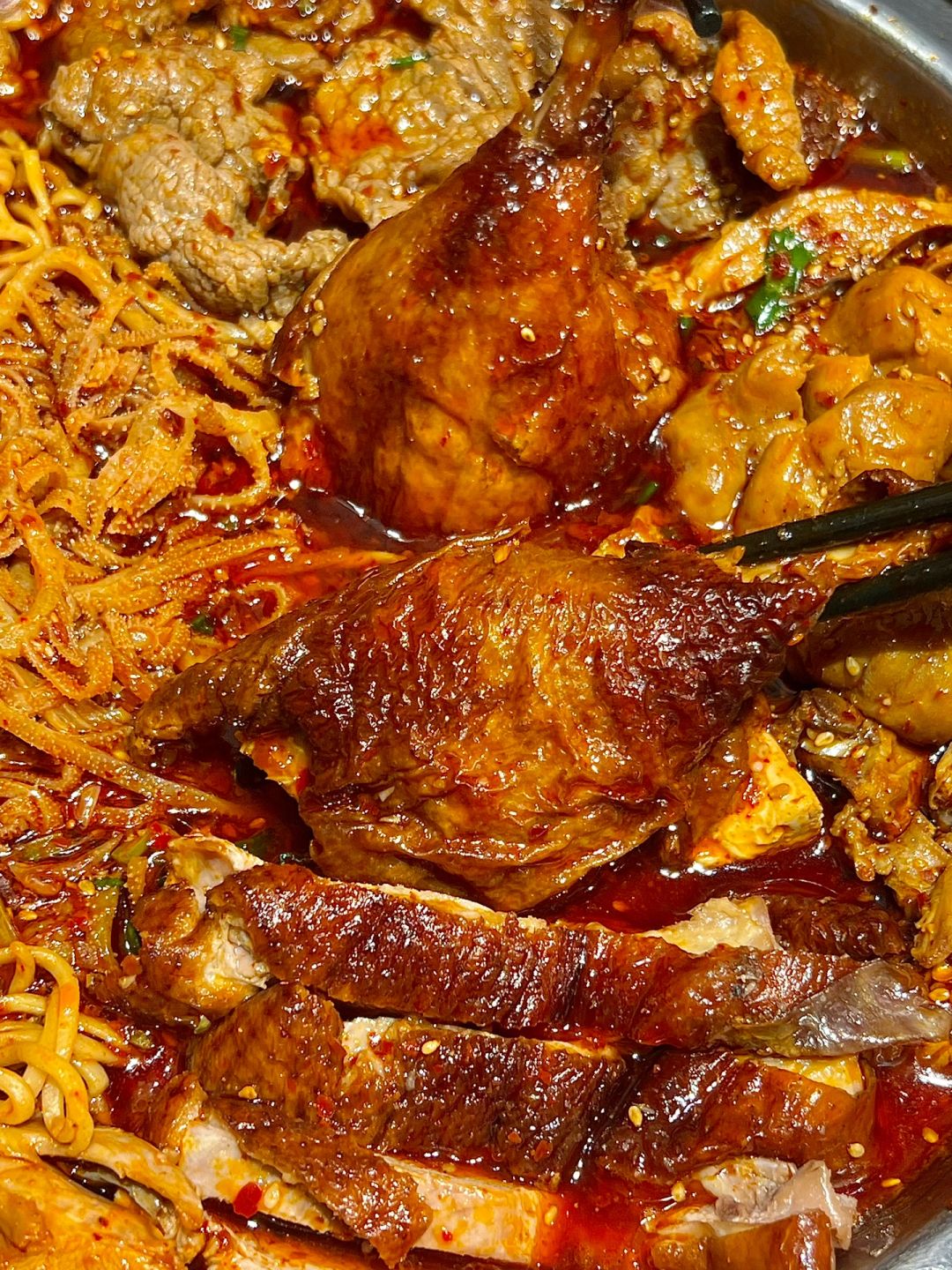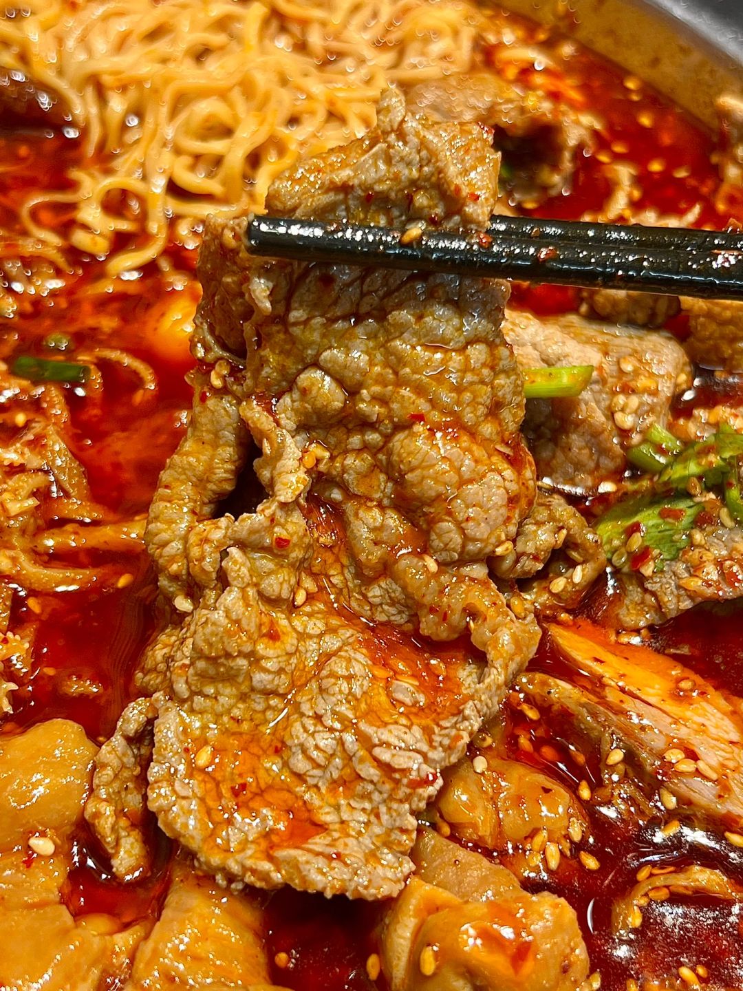 杭州我劝你不要太好吃了😭😭😭!!!! 是我逢人就会推荐的一家冒烤鸭🔥疯狂爱上!! 不愧是成都11年的老店!冒菜的汤底比牛肉还贵! 是我成都朋友认证的正宗好吃还便宜!!! . 推荐菜品: 冒烤鸭🦆招牌牛肉🐮千层肚、小腊肠记得加一份泡面🍜味道一整个升华!!!经过红油包裹的各种菜品不好吃是不可能的👍 还吃到了老妈蹄花🐷炖煮的趴烂,浇上红油 Q Q弹弹的,好吃的嘞! 📍以川冒烤鸭