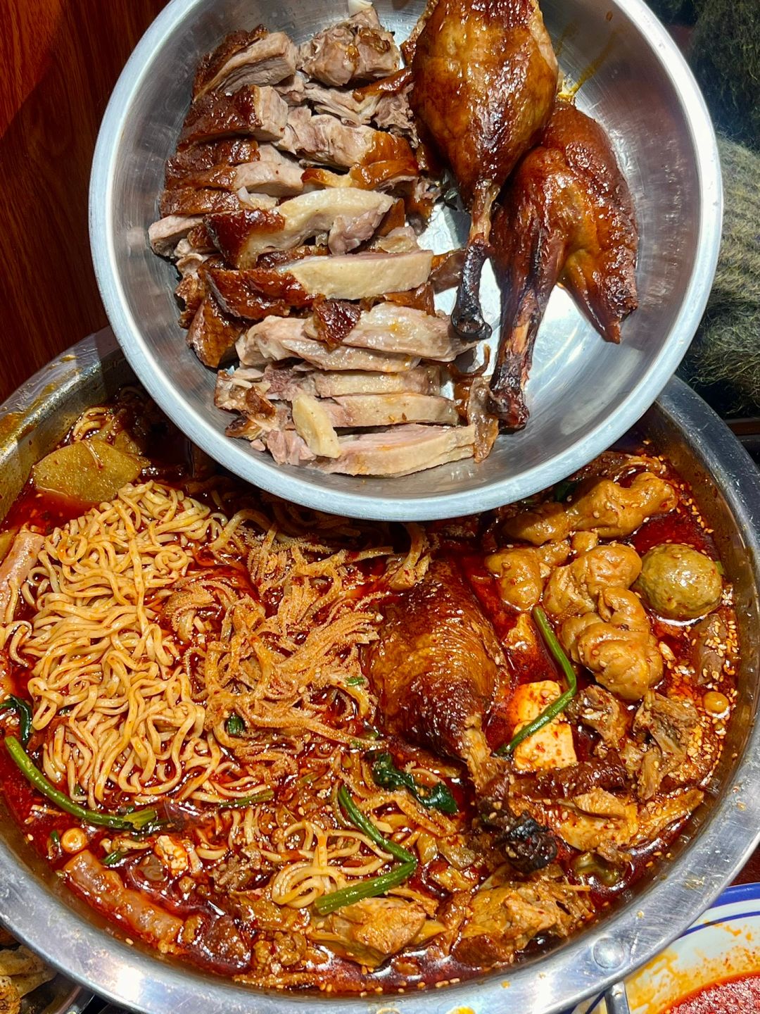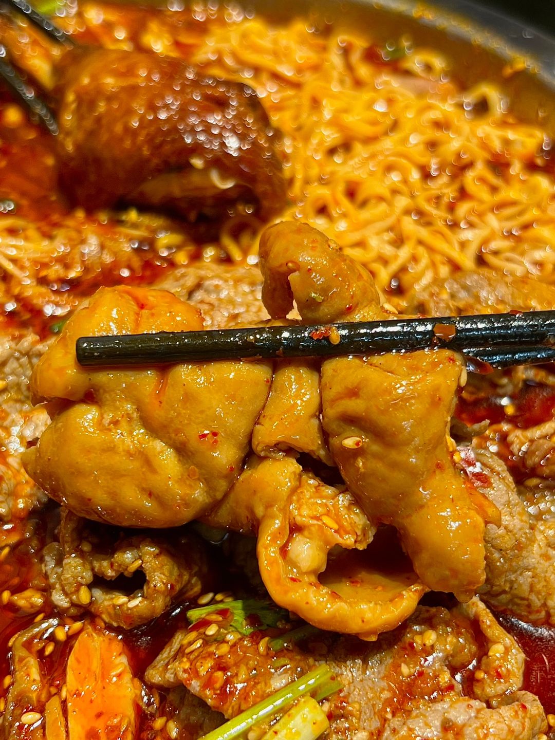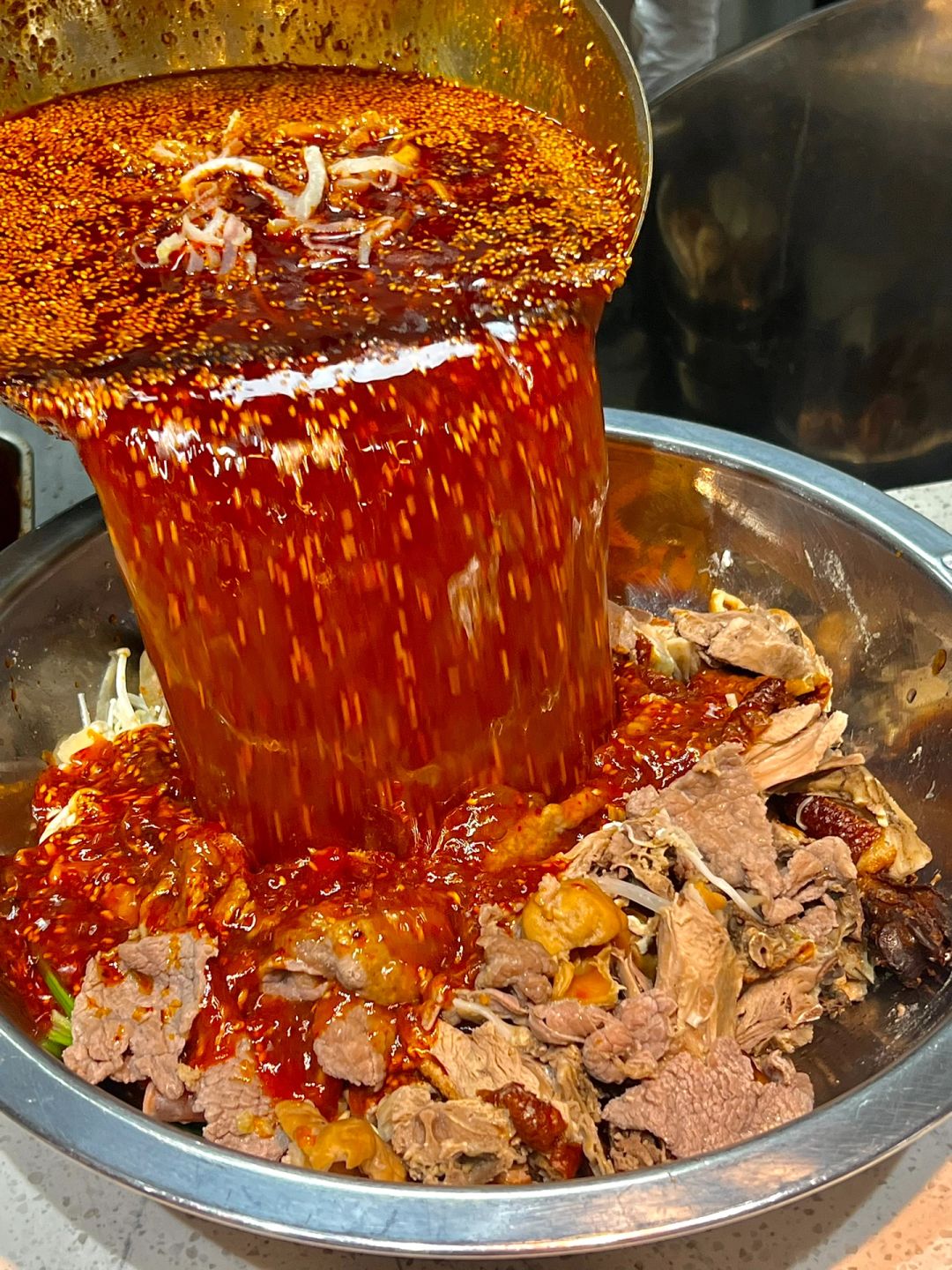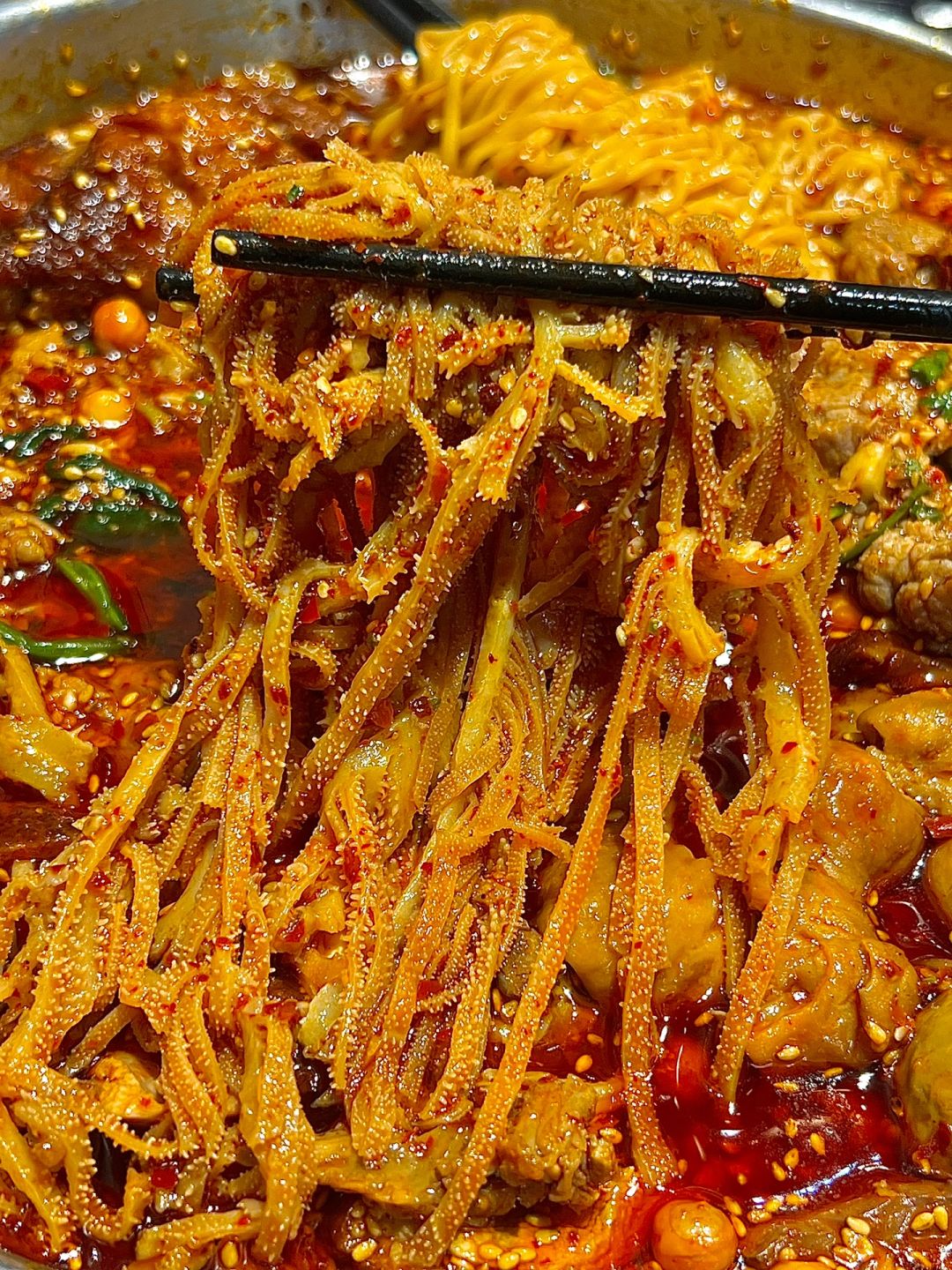 杭州我劝你不要太好吃了😭😭😭!!!! 是我逢人就会推荐的一家冒烤鸭🔥疯狂爱上!! 不愧是成都11年的老店!冒菜的汤底比牛肉还贵! 是我成都朋友认证的正宗好吃还便宜!!! . 推荐菜品: 冒烤鸭🦆招牌牛肉🐮千层肚、小腊肠记得加一份泡面🍜味道一整个升华!!!经过红油包裹的各种菜品不好吃是不可能的👍 还吃到了老妈蹄花🐷炖煮的趴烂,浇上红油 Q Q弹弹的,好吃的嘞! 📍以川冒烤鸭