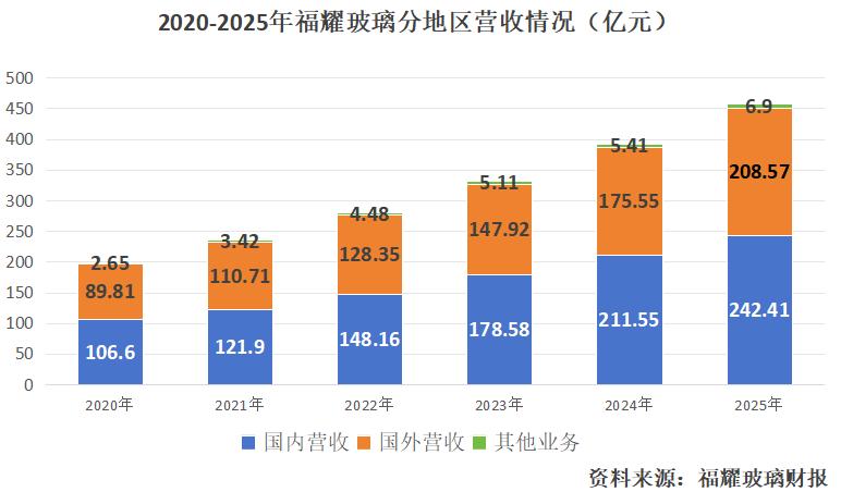 福耀玻璃发力的市场很清晰,2025年汽车玻璃占据其91.49%的营收,公司比玻璃大王更出名的身份,是“汽车玻璃寡头”。
