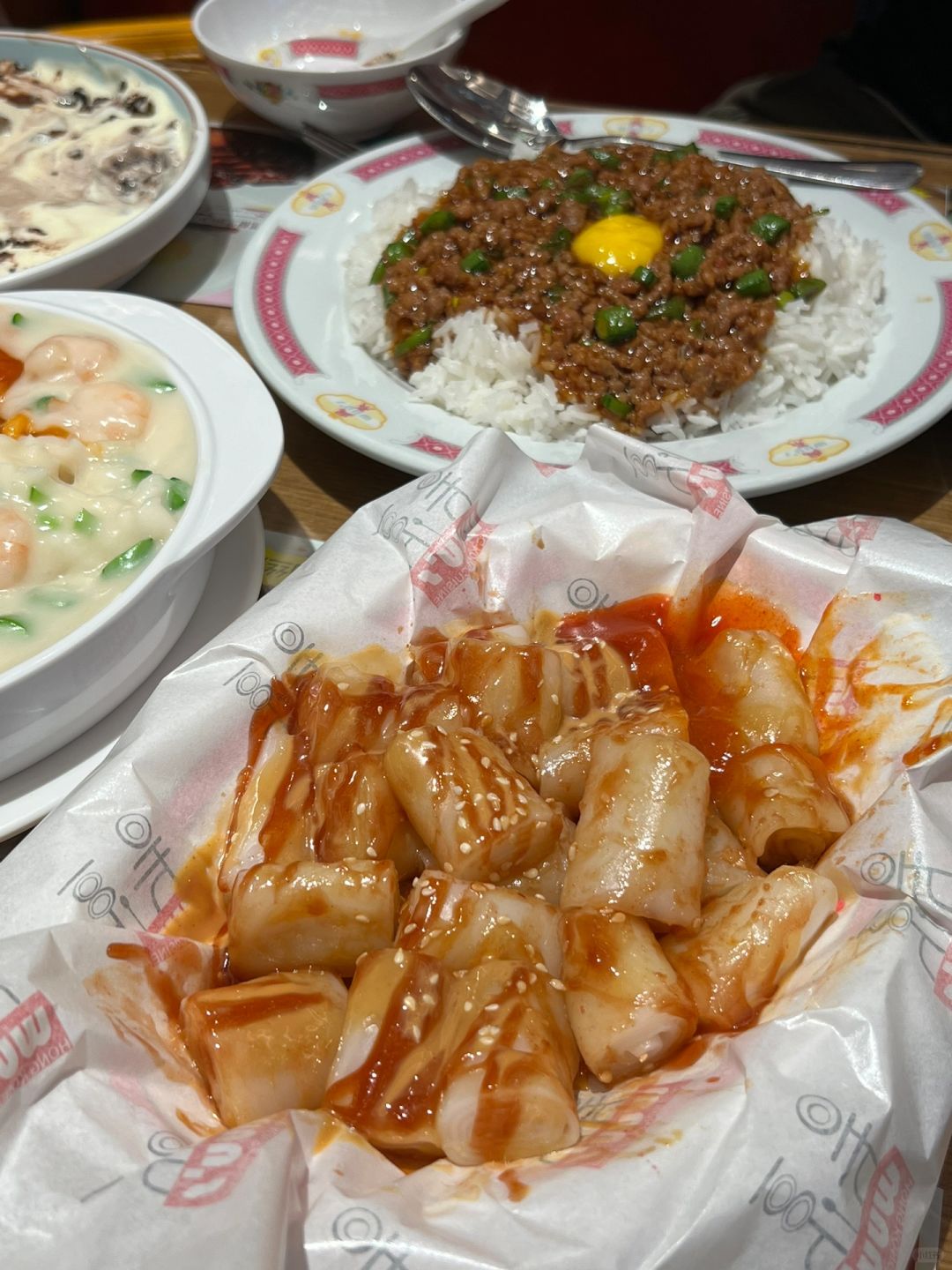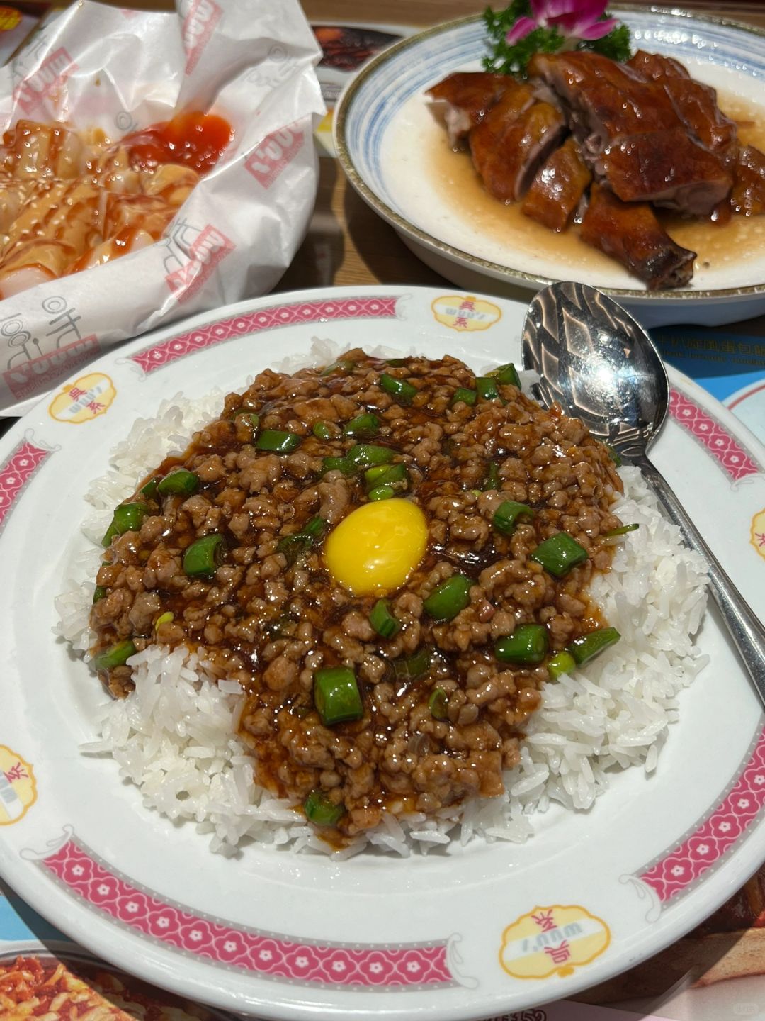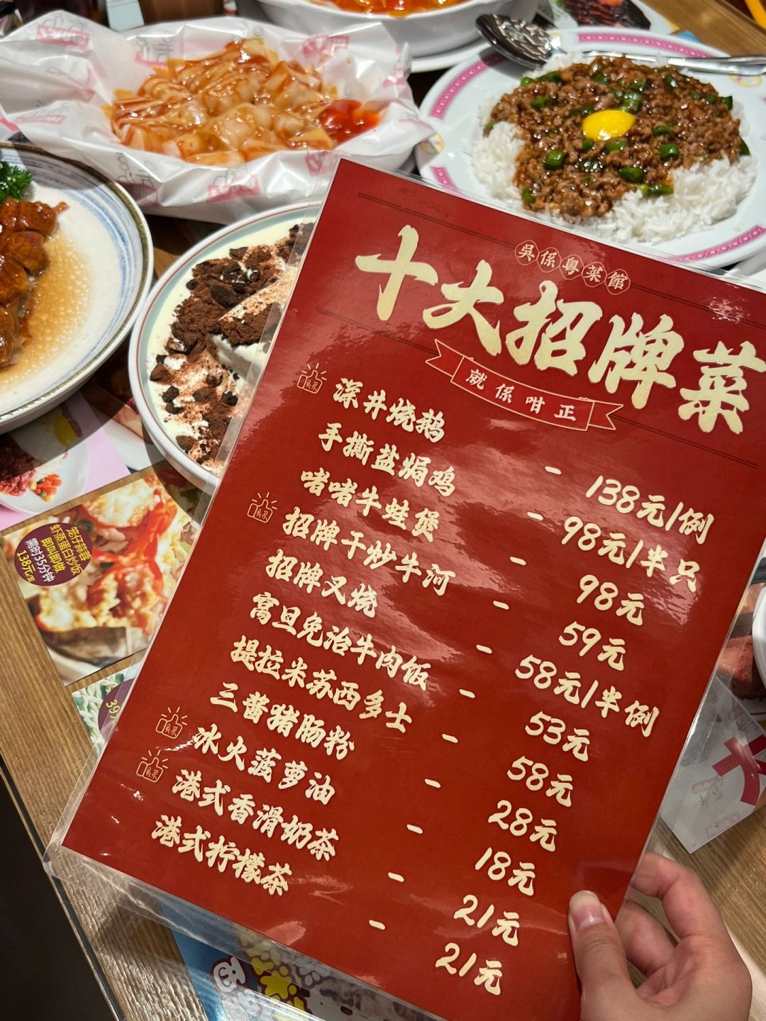 看到这块牌牌的时候我就知道自己没选错店了。。。 点了爆浆提拉米苏西多士、窝旦免治⽜⾁饭、深井烧鹅、三酱猪肠粉 都能吃的出不是预制的,味道不错 下午两点过去吃都是人满为患的。。好多大爷大妈也来吃这家!狠狠的推荐了!!!