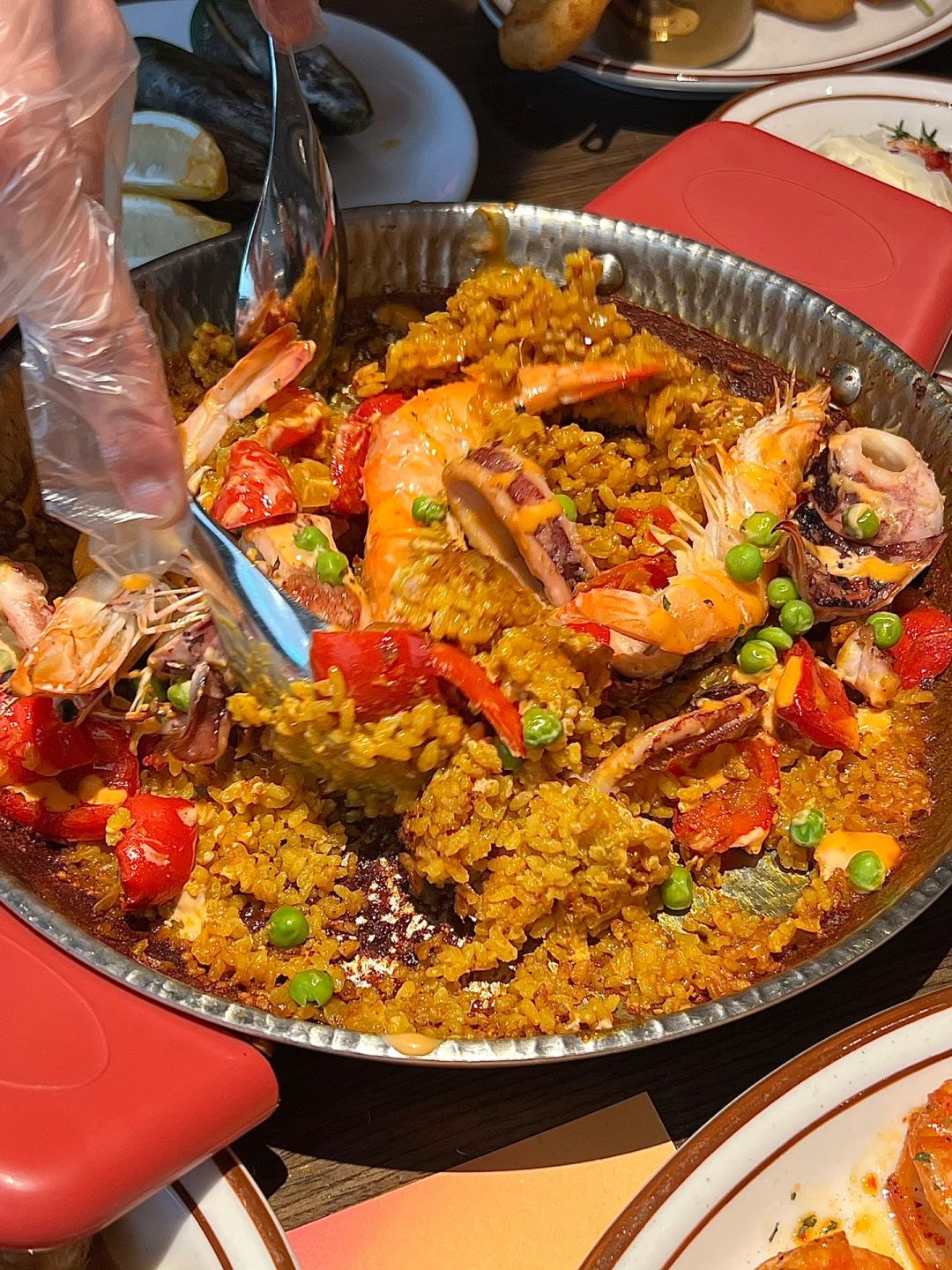 上海顶顶好吃的西班牙海鲜饭餐厅!!! 我愿称之为上海zui好吃的西班牙海鲜饭….没有之一 每桌bi点!里面有大鱿鱼、大虾、青贝….海鲜 米饭软硬度刚刚好,包裹着酱汁好好吃🤤 西班牙蒜香油爆虾🧄只只都是开背去虾线的大虾! 虾肉紧实Q弹 好吃哭 🔥烤牛肉tapas 烤的酥脆的面包片搭配烤牛肉🥩一口下去好满足 🍗西班牙甜辣鸡 酱汁浓郁,裹满黄奶酪🧀️别提有多美味了 现在还有“好柿连连”的活动有机会🉐️代金券、帆布包….大家都可以参加下哦~