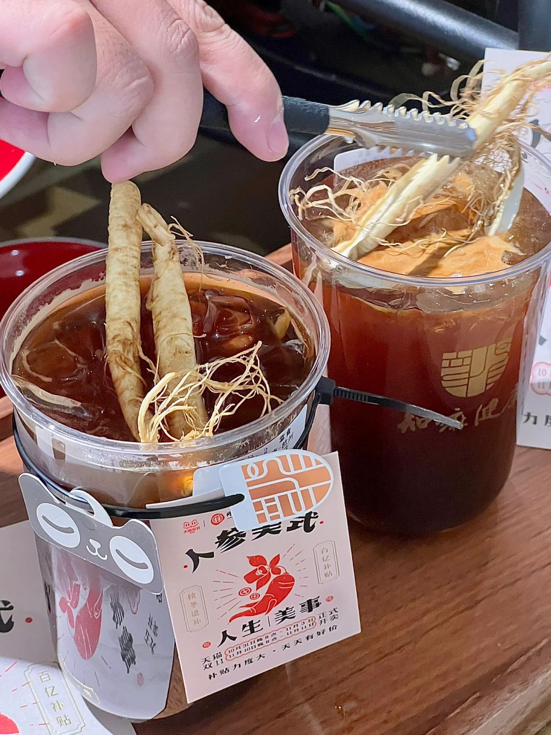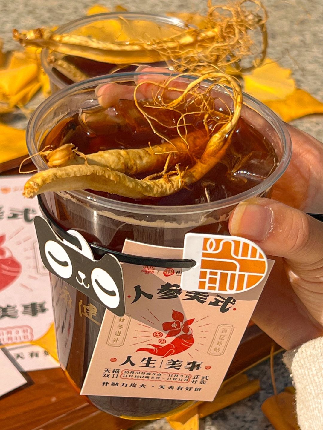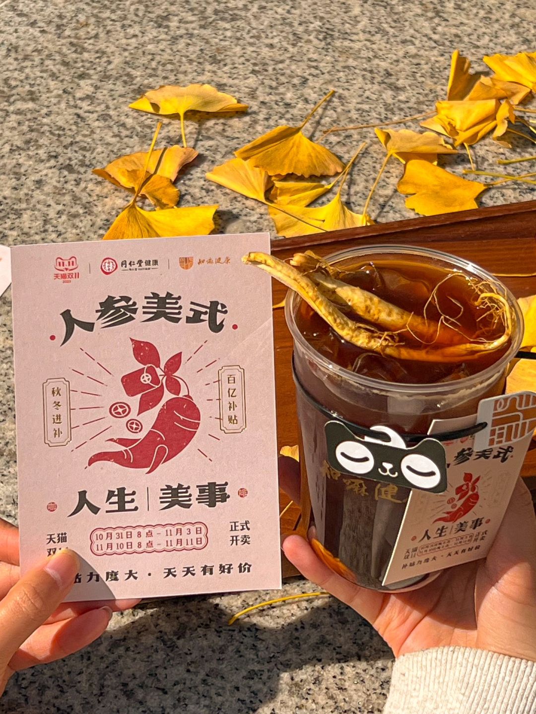 合理的怀疑每一个当代年轻人的精神状态哈哈哈哈 究竟是咖啡变了心,还是人参劈了腿!! 居然让我喝到了人参美式这种神奇的东西哈哈 原来是同仁堂和天猫双11联名推出的更适合养生人的咖啡☕️ 每一杯里面都有一根完整的人参搭配上冰美式,本来以为会很奇怪! 结果竟然出奇的好喝诶!美式的苦加上中药的苦,以苦攻苦=不苦 因为给的人参偏小店家还特意给了两根~真的是大补哈哈哈哈 现在双11上天猫百亿补贴还可以get 超值山药粉,超白瓶身体乳、高端枸杞子等各种进补好物哦! 宝宝们趁这波活动赶紧行动起来吧~