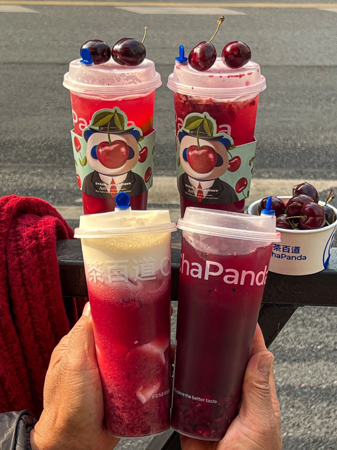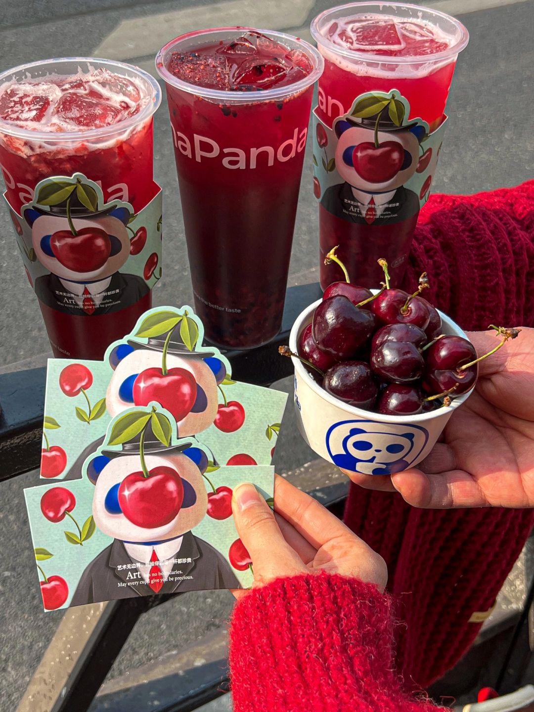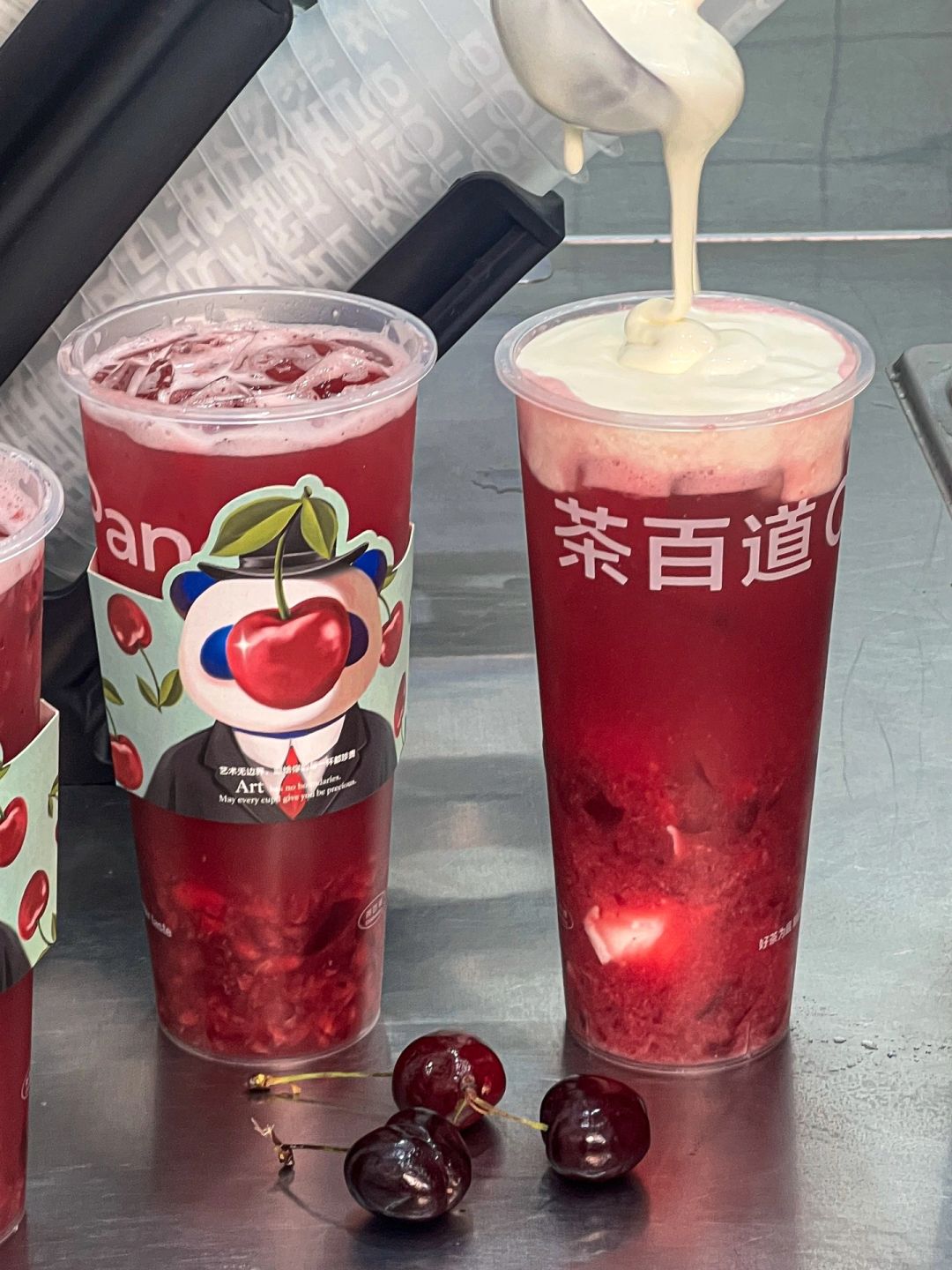🍒超现实洛神车厘子 隐藏喝法:➕奶冻➕芝士奶盖!一喝一个不吱声! 先喝一口芝士奶盖,再用吸管搅匀,奶呼呼的一杯谁会不爱啊。。。
