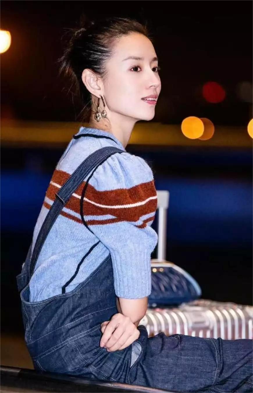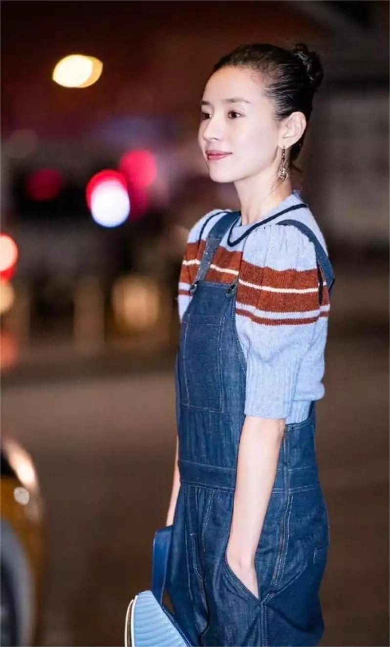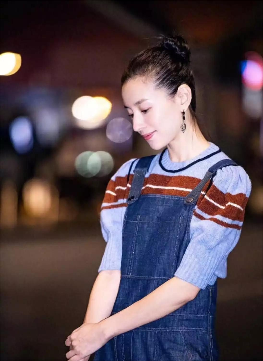 被董洁的春装穿搭惊艳了!条纹毛衣搭配“初恋裤”,时尚高级又减龄,仿佛让人看到了青