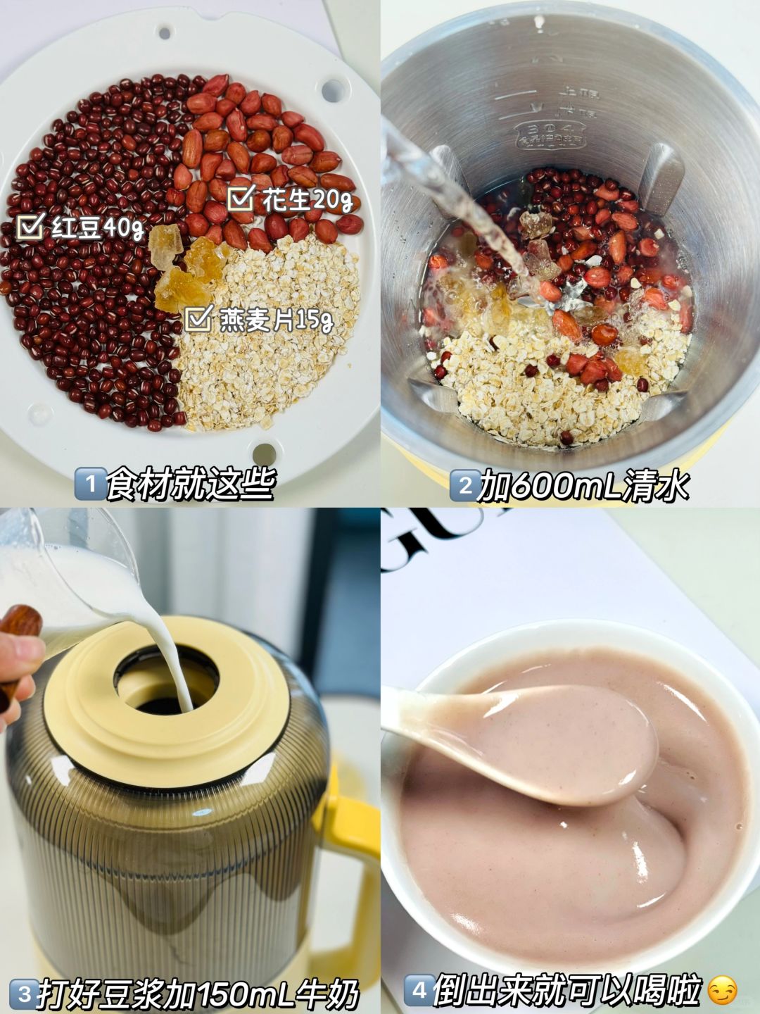 姐妹们!这个搭配真的好好喝~ 香醇浓郁,奶香味十足~ 球球你们,一定给我喝,比奶茶还香! ✅食材: 红豆🫘40g➕花生🥜20g➕燕麦片15g➕牛奶🥛150mL ✅做法: 将所有食材放入破壁机中(根据自己的口味加适量冰糖)➕600mL清水,豆浆模式,打好,倒入150mL牛奶🥛即可! 🌈真的太太太太好喝了,这个搭配女孩子🉑经常喝,气色好,皮肤也好[微笑R] ❤️赶紧点赞收藏做起来[害羞R]
