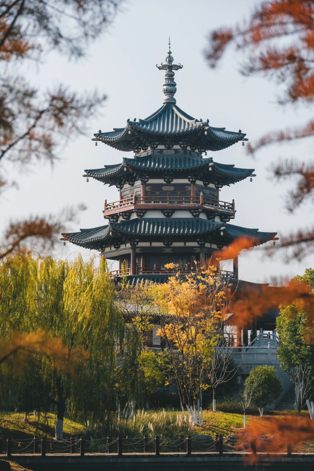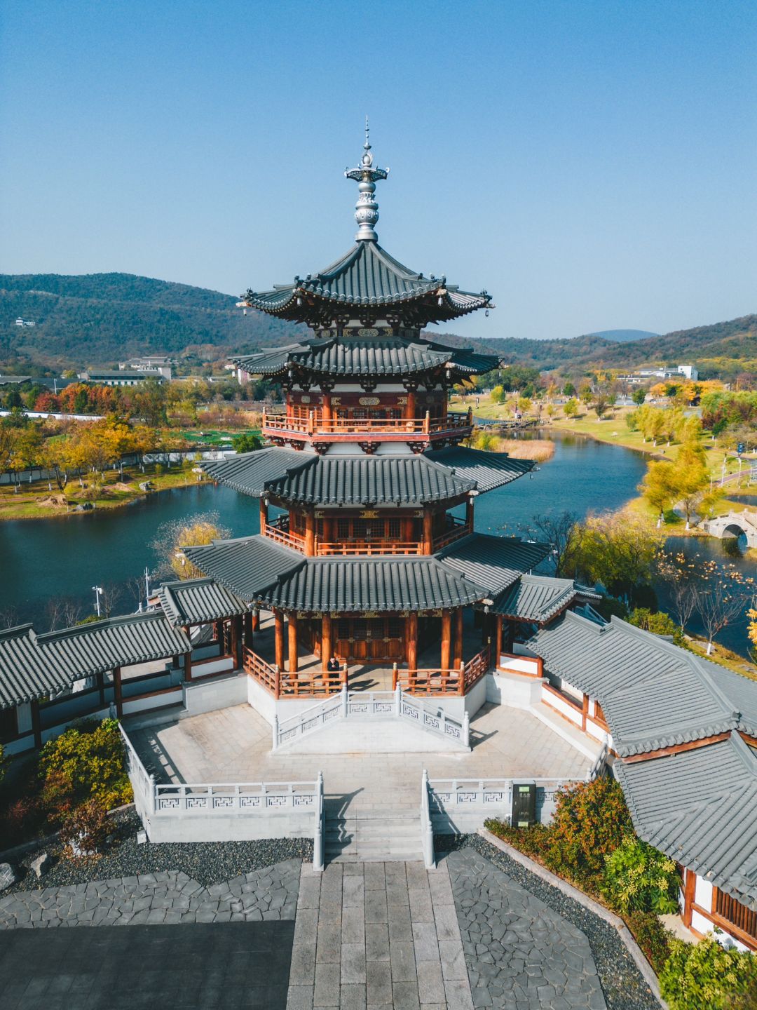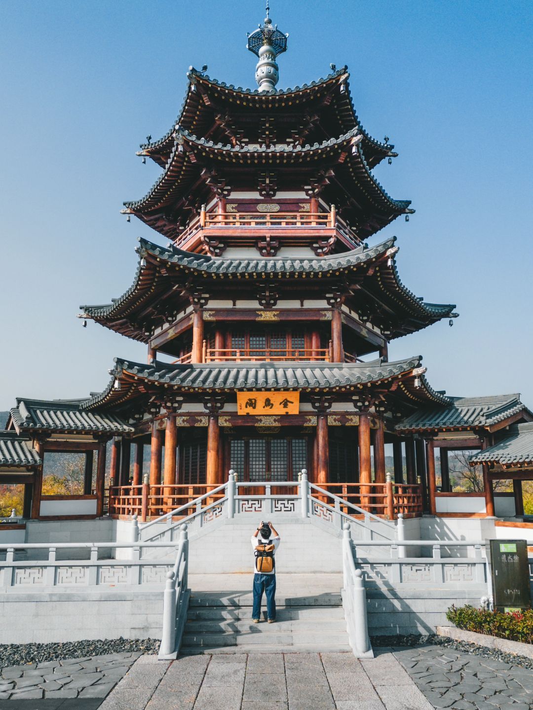 2⃣️:酒店就身处在南京有名的可以免费泡汤♨️的金乌公园,这里有🥰的步道,在中间更是有一座自带禅意的“金乌阁”