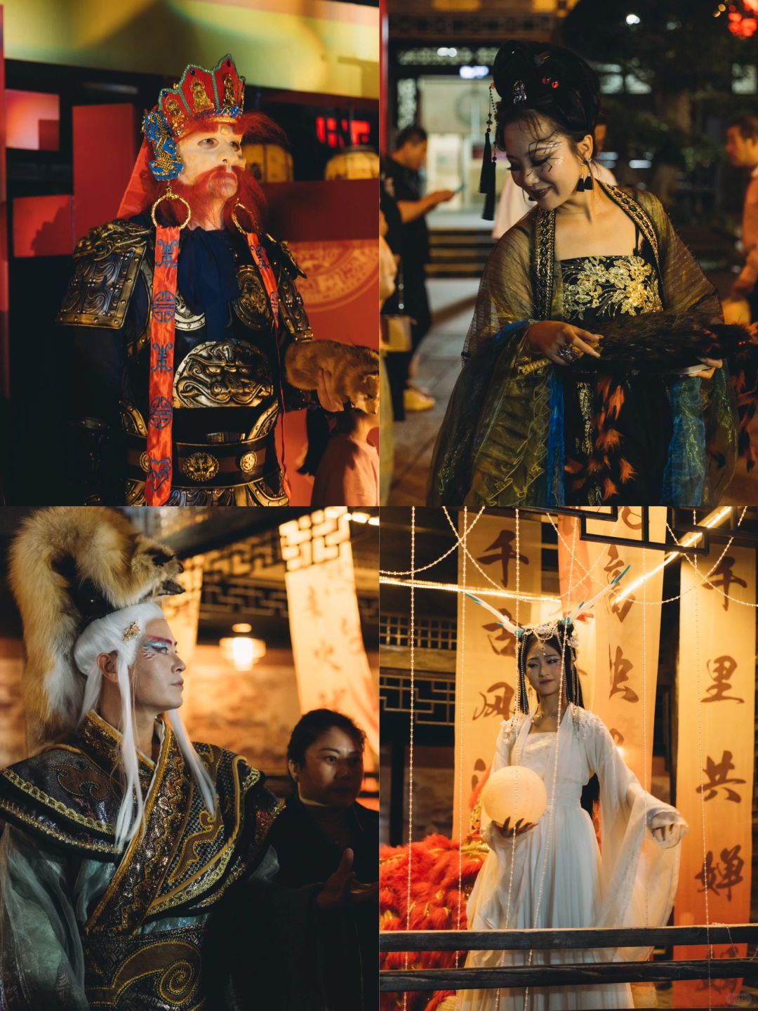到了晚上🌃就是重头戏:神,鬼,妖,三界联动演出,诸子百家园的《国风聊斋之光影仙境》,市井商街的《国风聊斋之百妖盛宴》,春秋王宫——九坊美食街的《国风聊斋之百鬼夜行》!