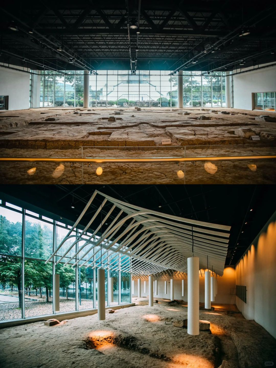 参观全程都能看到大片遗址现场贯穿整个展馆,包括三大殿遗址、油库遗址、砖井遗址、排水暗渠遗址等等,当年宏大的规制一目了然