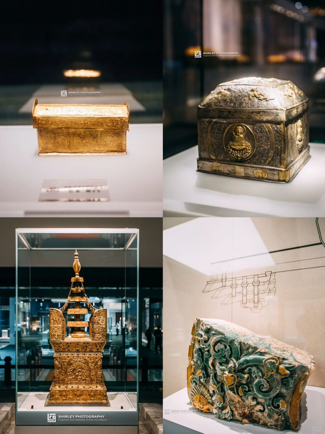 展示了从长干寺地宫中出土的一大批重磅文物与佛教圣物。最珍贵的便是“塔王”七宝鎏金阿育王塔。还有展厅中央的大报恩寺“琉璃拱门”复制品也很瞩目,原件在南京博物院