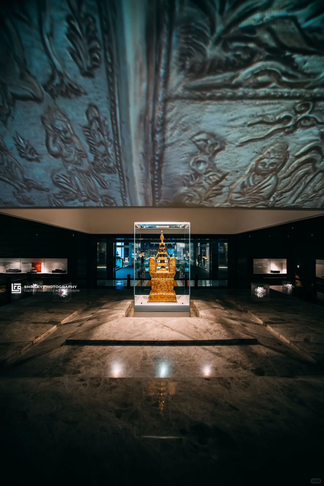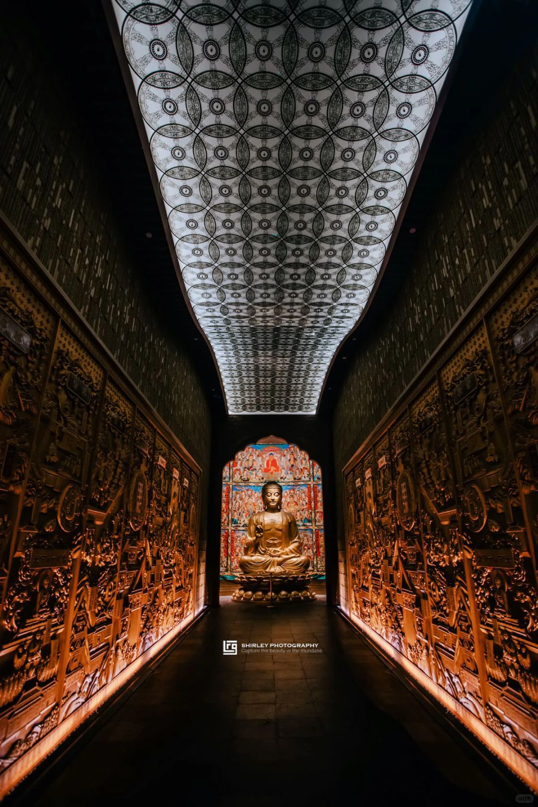 展厅呈穹窿式,圆形的穹顶上排布了42000盏琉璃佛灯,使得整个空间璀璨夺目、熠熠生辉。