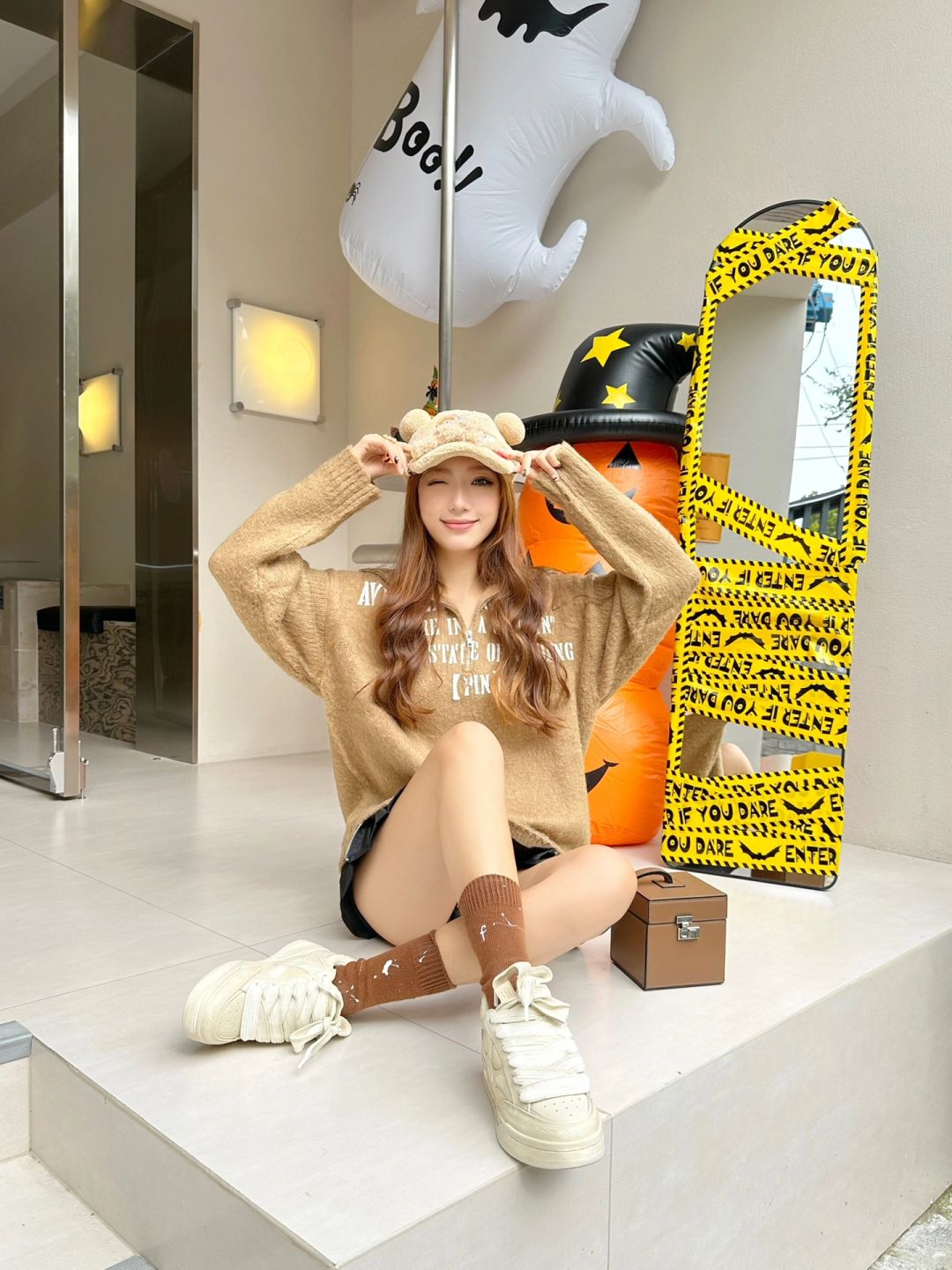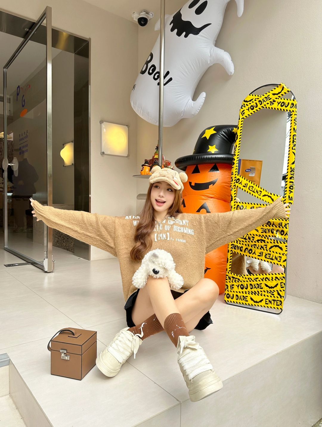 西安咖啡店尊嘟好韩 在万圣节气球里假扮一只小熊