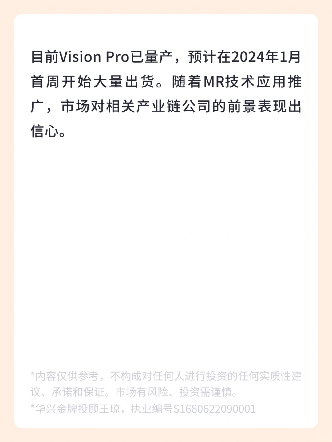 *华兴证券投资顾问王琼,执业编号S1680622090001