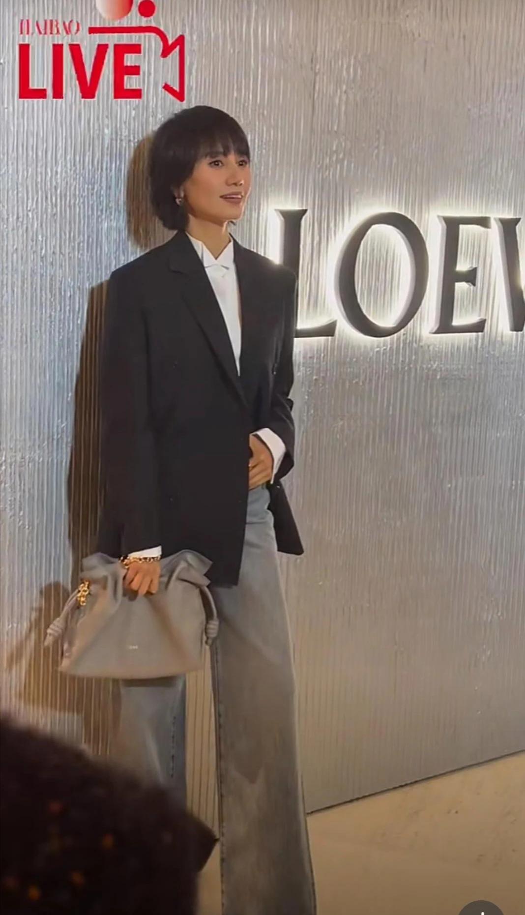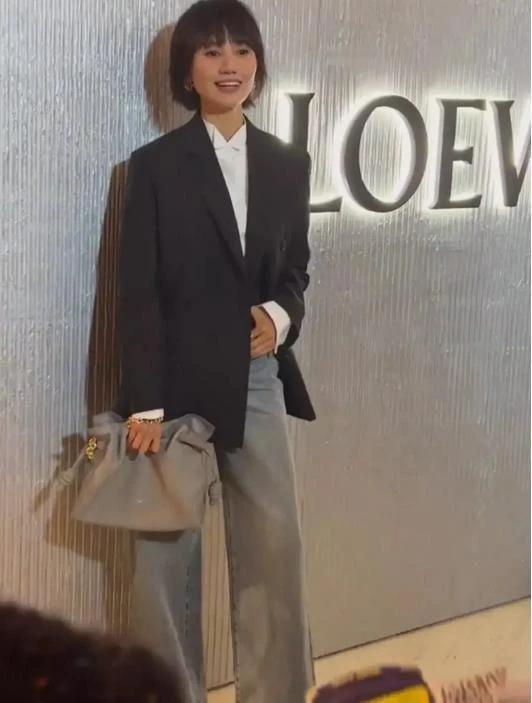 袁泉出席品牌活动,西装搭牛仔筒裤,简约而不简单,时尚高级,妆容淡雅精致,又美又飒