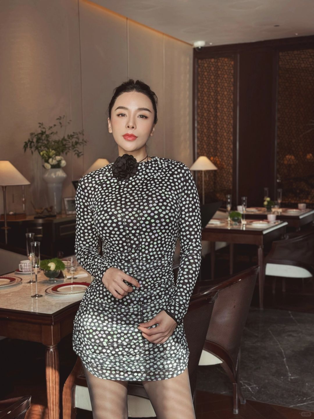 女明星同款 贵气感 时髦单品 ysl波点连衣裙高级穿搭 ootd每日穿搭