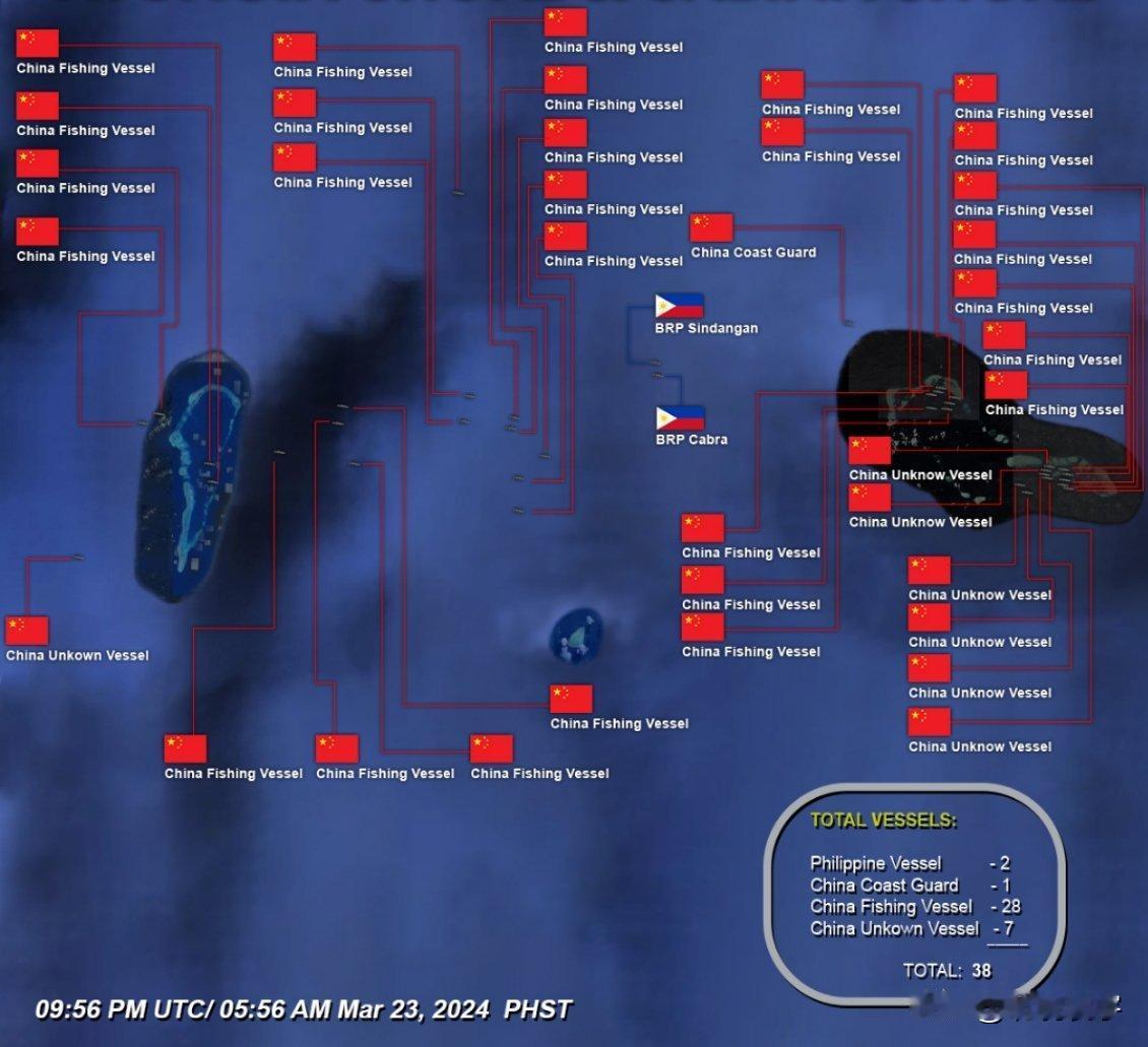 3月23日,南海仁爱礁和仙宾礁附近,都出现了菲律宾当局挑衅。菲律宾武装部队发文表示,企图闯入仁爱礁,向非法坐滩的菲律宾海军登陆舰提供补给的,菲律宾军队的UM4号补给船在两艘中国海警船的水炮攻击下,已经严重受损,菲律宾军队的UM4号运补船失去了动力,依靠菲律宾海岸警卫队巡逻船辅助和掩护下航行。中国海警战舰对菲律宾海岸警卫队UM4号运补船发射水炮,从时间上看,水炮至少持续了40分钟,菲律宾军方的补给船交了一个透心凉。菲律宾此次执行补给任务的,就是3月5日被中国海警水炮击碎挡风玻璃的UM4号补给船,这说明菲律宾海岸警卫队的补给船即将数量不足了。