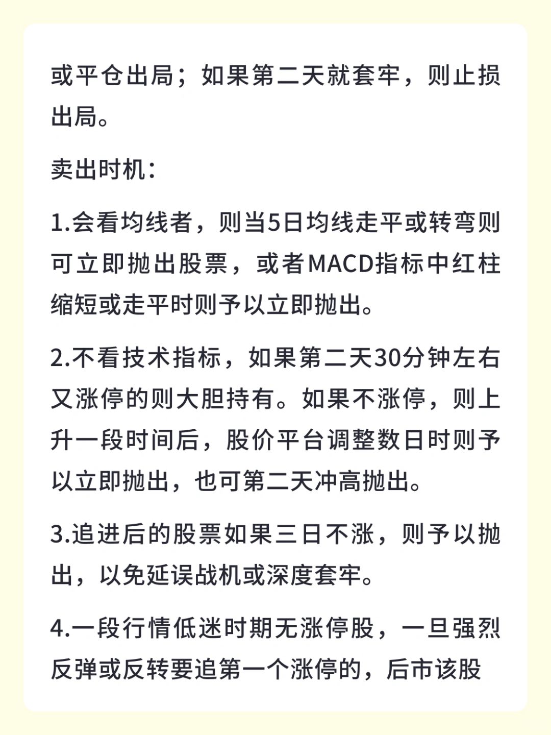 👉 追进后的股票如果三日不涨,则予以抛出,以免延误战机或深度套牢。