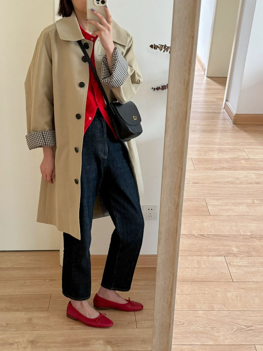 衣柜里的风衣可以拿出来了 卡其色风衣的一衣多穿👇 · 我是内搭了红色针织衫+丹宁牛仔裤 早春早晚温差大(保暖)+小面积提亮 整体带点小法式 · p7-p10是一些我喜欢的搭配 都很日常 参考实用性高