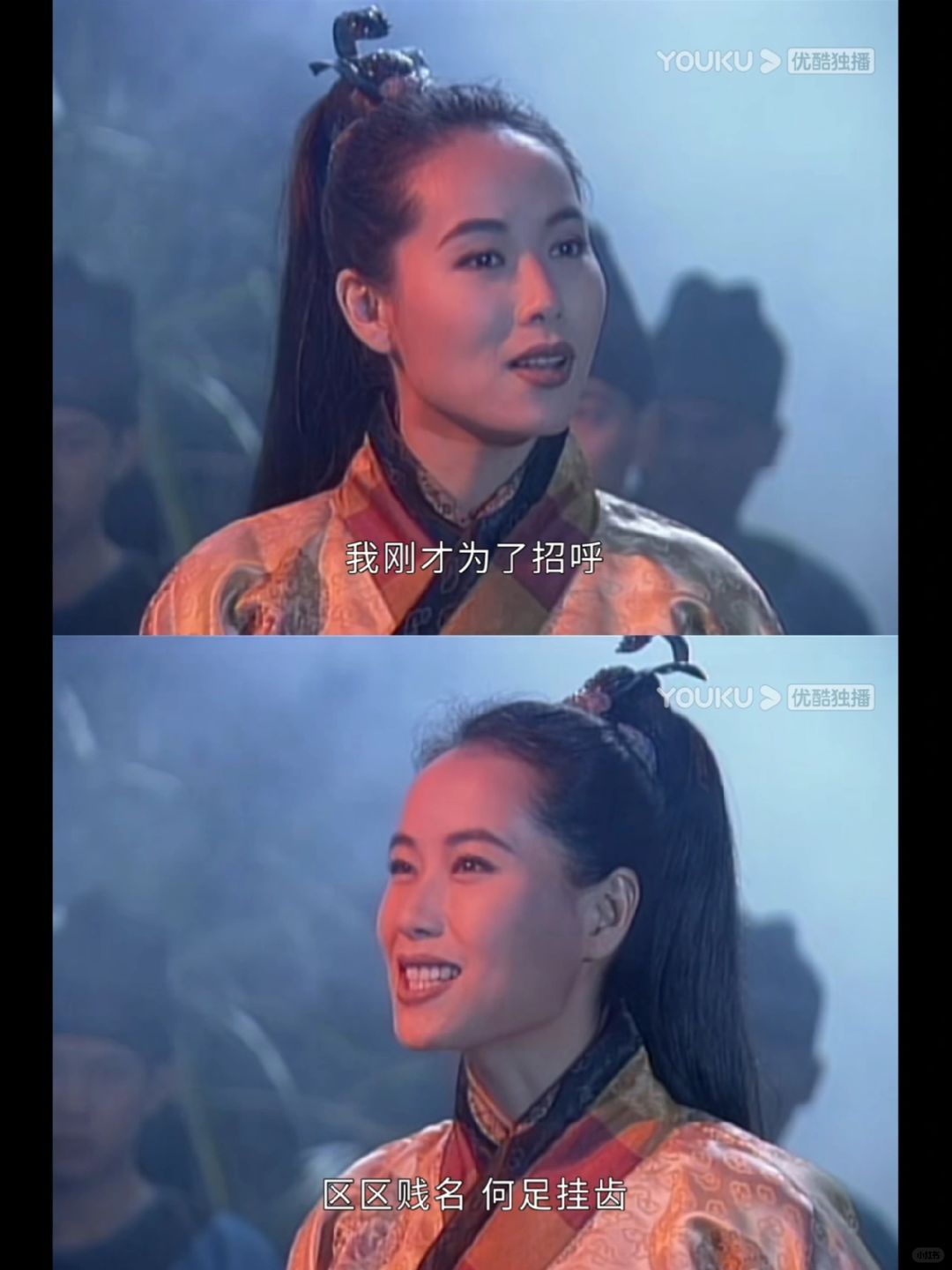 比殷素素好一些,差强人意 图1⃣️男装扮相和图4⃣️额前的装饰造型还可以 突出叶童的英气,或者修饰额头、颧骨