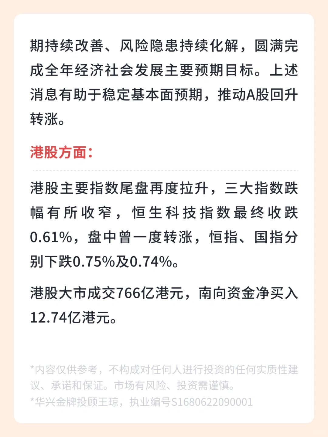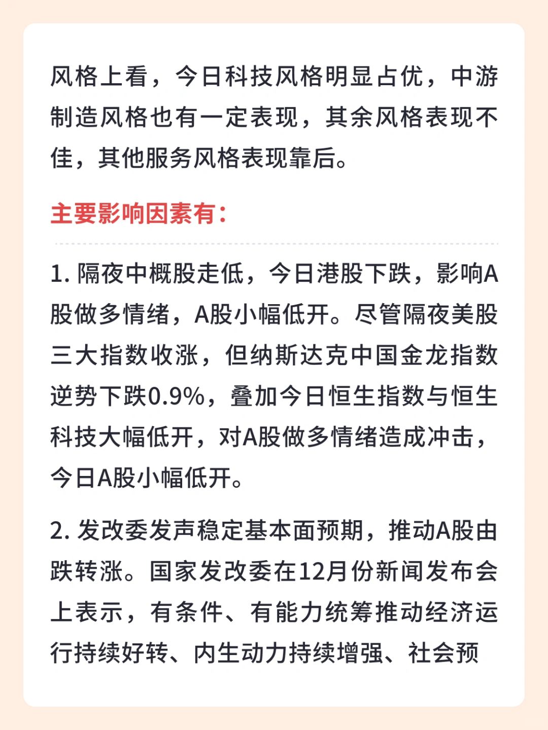 👉 发改委发声稳定基本面预期,推动A股由跌转涨。国家发改委在12月份新闻发布会上表示,有条件、有能力统筹推动经济运行持续好转、内生动力持续增强、社会预期持续改善、风险隐患持续化解,圆满完成全年经济社会发展主要预期目标。上述消息有助于稳定基本面预期,推动A股回升转涨。
