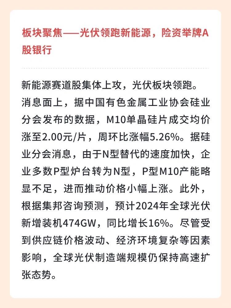 2⃣️ 板块聚焦——光伏领跑新能源,险资举牌A股银行