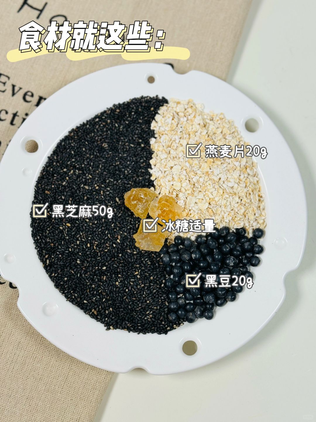 分享我的早餐! 今天喝的这个黑芝麻糊真的好好喝,差不多还袁了“南方”黑芝麻糊等赶脚!姐妹们你们喝喝看!真的不错! ⚠️黑芝麻:滋养月干肾,益血乌发,黑芝麻富有维生素E。 ✅食材: 黑芝麻50g,黑豆20g,燕麦片20g,冰糖适量。 ✅做法: 将所有食材放入破壁机中,这个搭配加600mL清水,豆浆模式即可! 🌈经常熬夜,👩🏻🦳de姐妹,容易掉发de姐妹喝起来!早餐来一杯真de太舒服了!