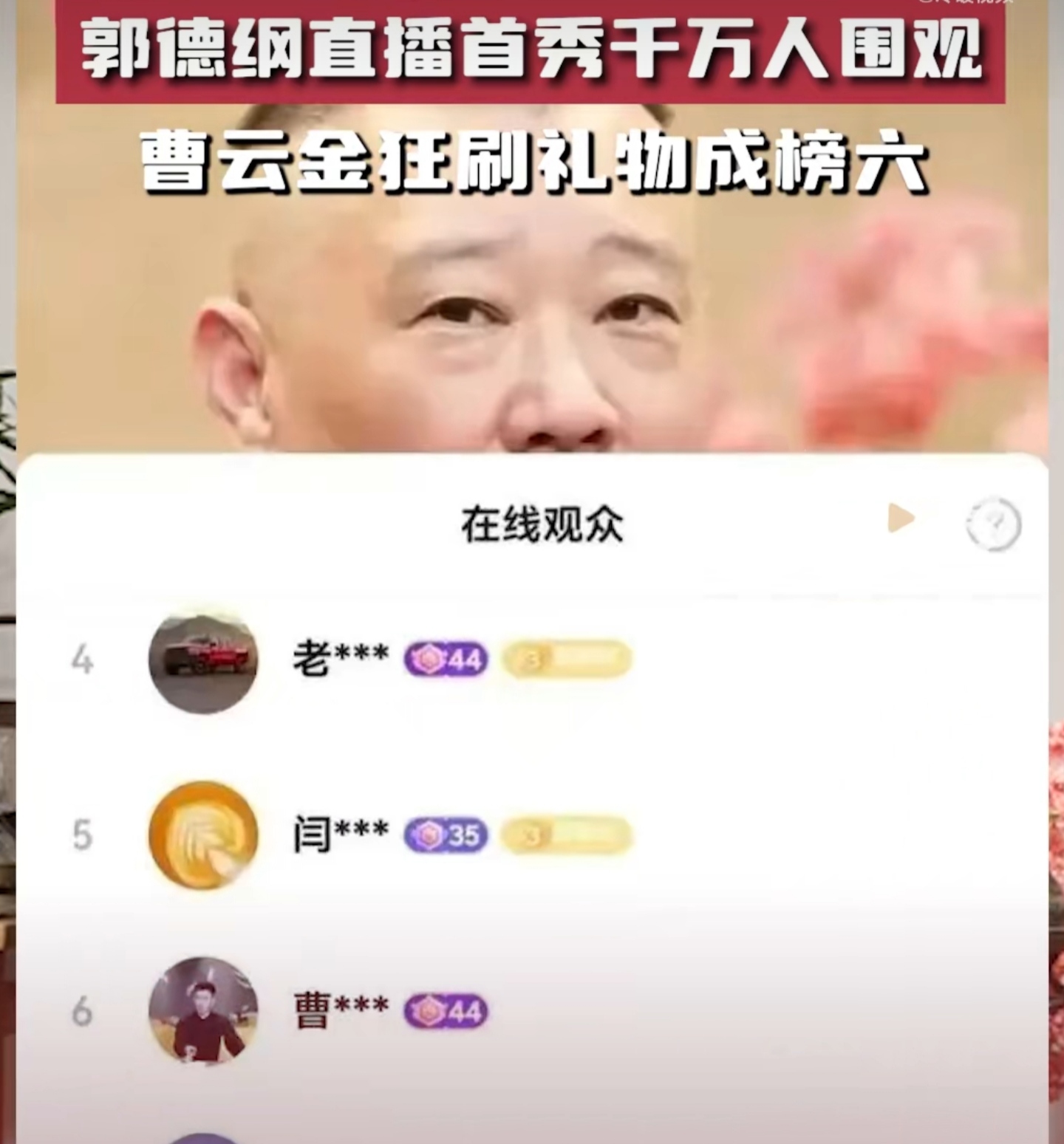 郭德纲直播首秀,未关闭直播打赏,曹云金狂刷礼物引发热议 郭德纲直播首秀成绩亮眼,