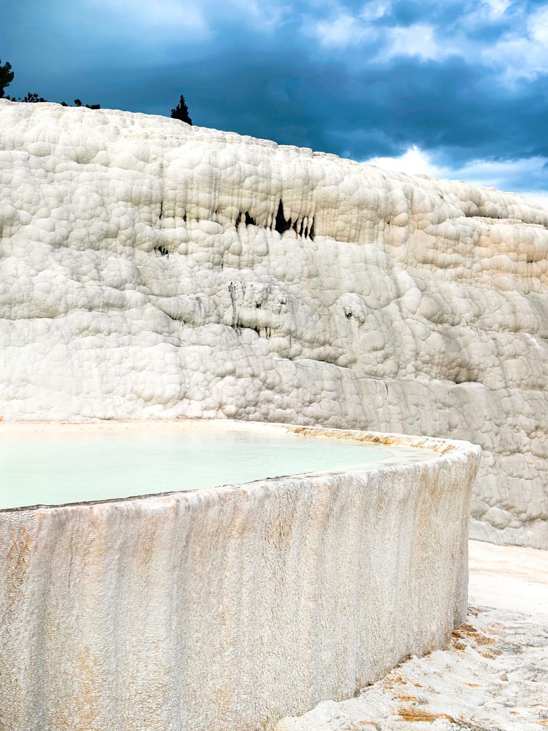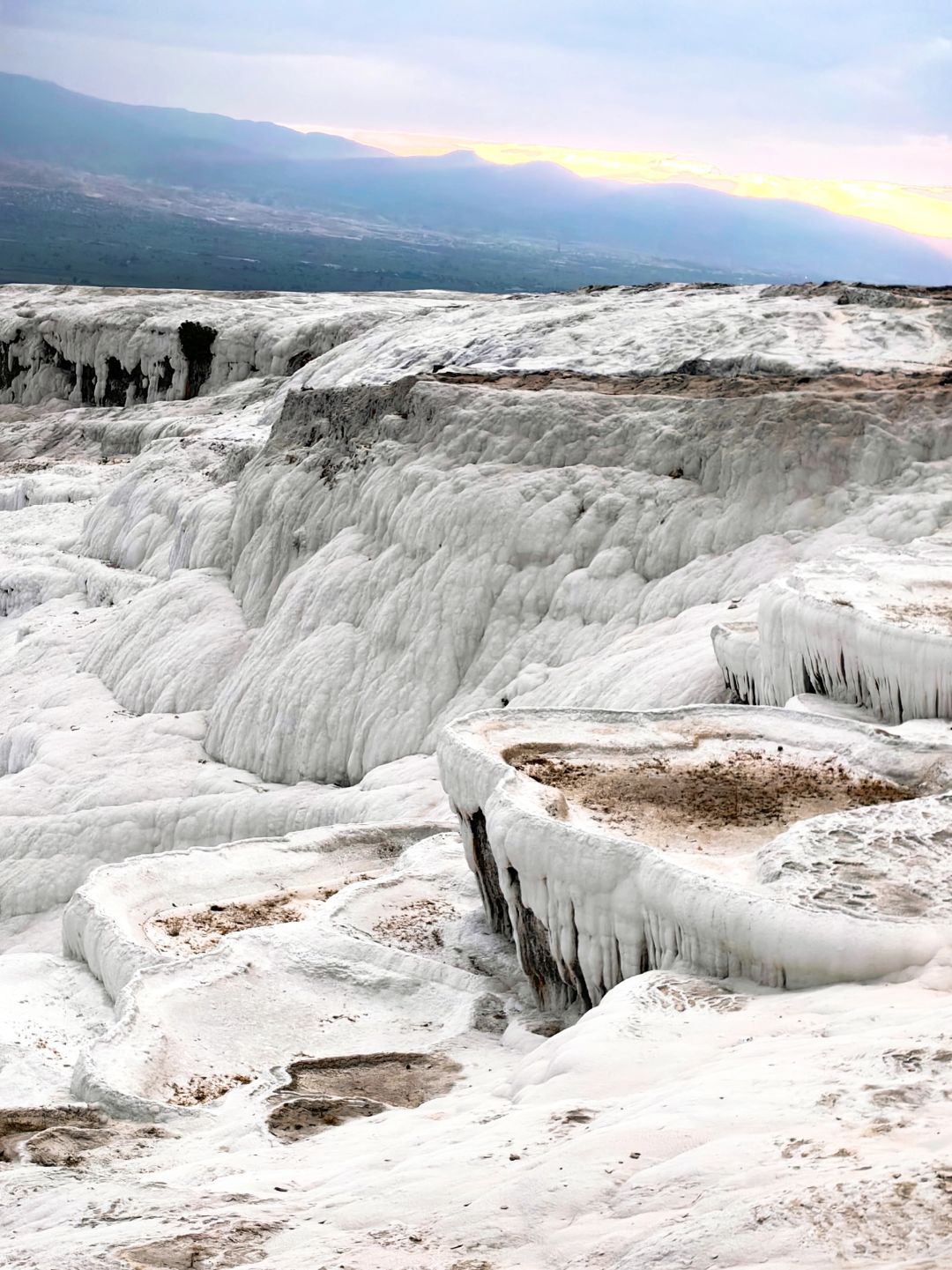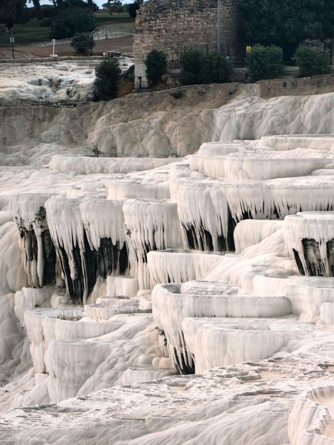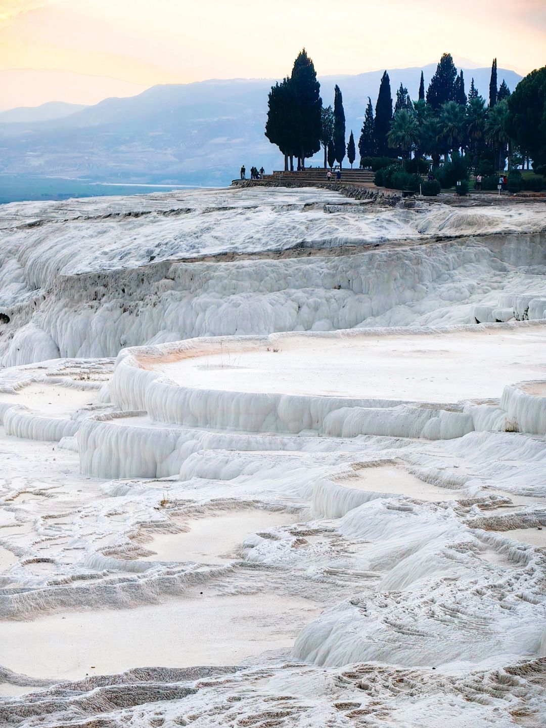 棉花堡现在有些池子不放水,只有一排有水。但是无论是直观的看还是拍照还是很震撼,而且可以带着泳衣,天然温泉真的很舒服。