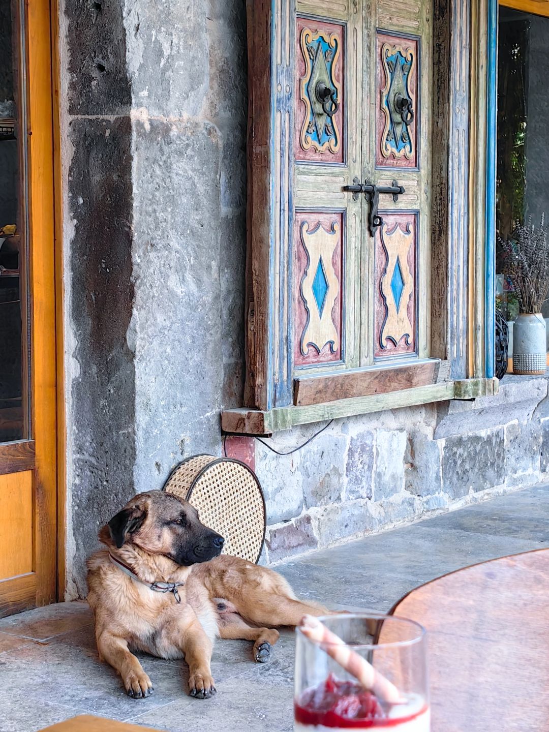 酒店有好几只狗和猫,非常宠物友好。早餐质量很好,牛肉炒蛋爆赞!而且小猫小狗会陪你一起吃早餐,还有一只小狗在我们房间门口看门😂。
